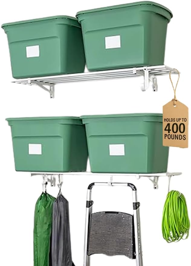 • HEAVY-DUTY STORAGE SHELVES – This 2-pack of wall-mounted garage shelves offers dependable, space-saving storage for any setup. Available in a range of sizes to suit your space, each shelf supports up to 200 lbs—ideal for storing bins, tools, tires, and gear. A solid pick for maximizing wall shelves in your garage, shed, or utility room.