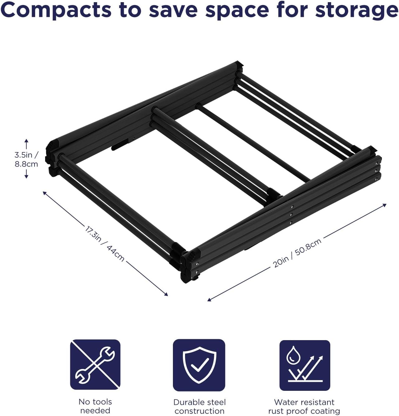 • READY TO USE: No tools are required to assemble, accordion design drops open and locks into place. Stable structure so it would not collapse while using. Can bear the weight of hanging items.