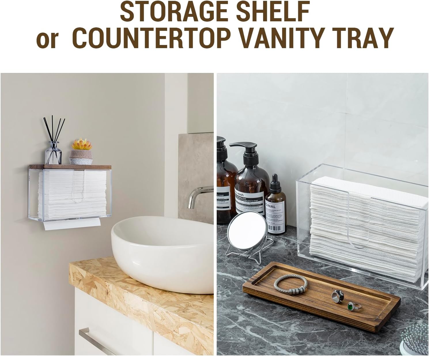MyGift Deluxe Modern Metal Folded Commercial Paper Towel Holder with Rustic Burnt Solid Wood Tray Lid, Wall Mounted Trifold Multifold Z Fold Disposable Napkin Dispenser (Acrylic & Burnt Wood)
