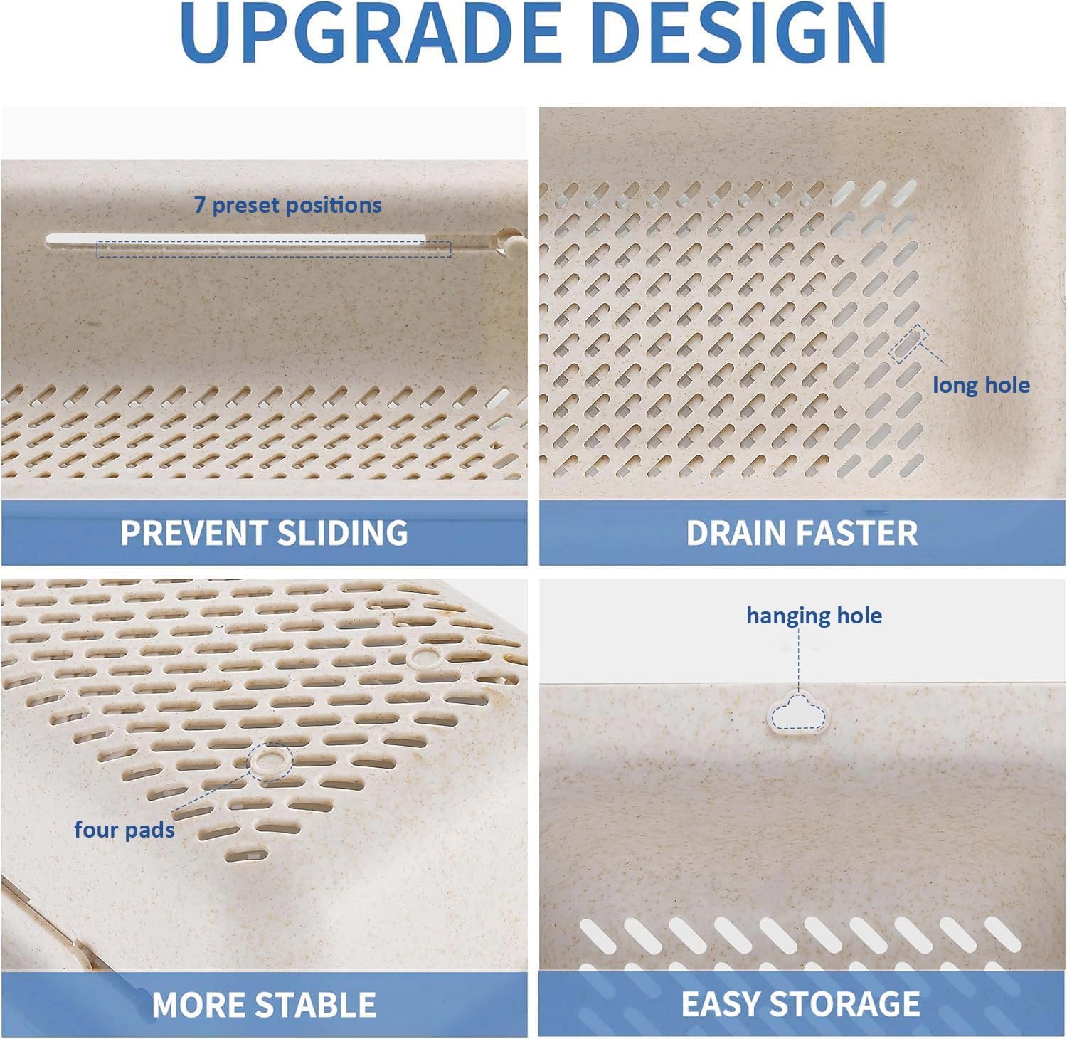 • LASSHSWA upgrade the colander, 7 preset positions - PREVENT SLIDING, long hole - DRAIN FASTER, four pads - MORE STABLE, hanging hole - EASY STORAGE.