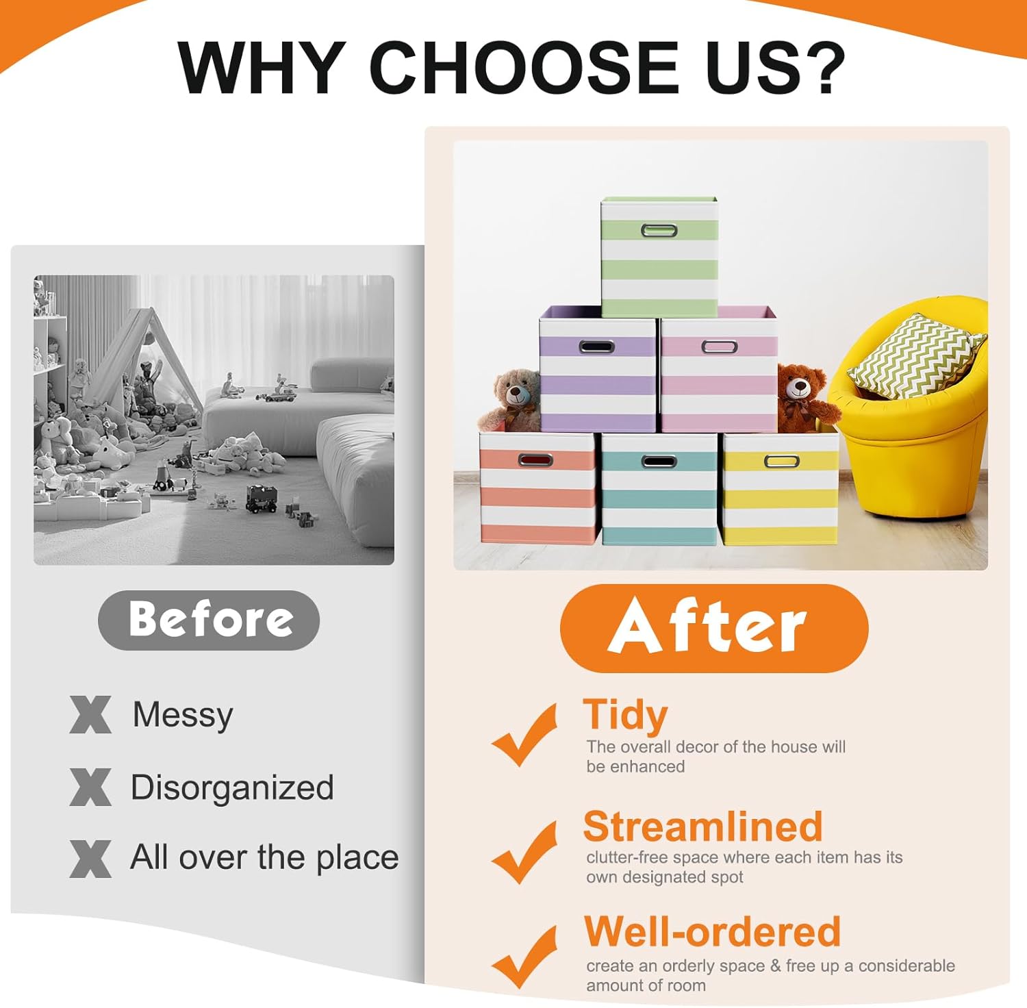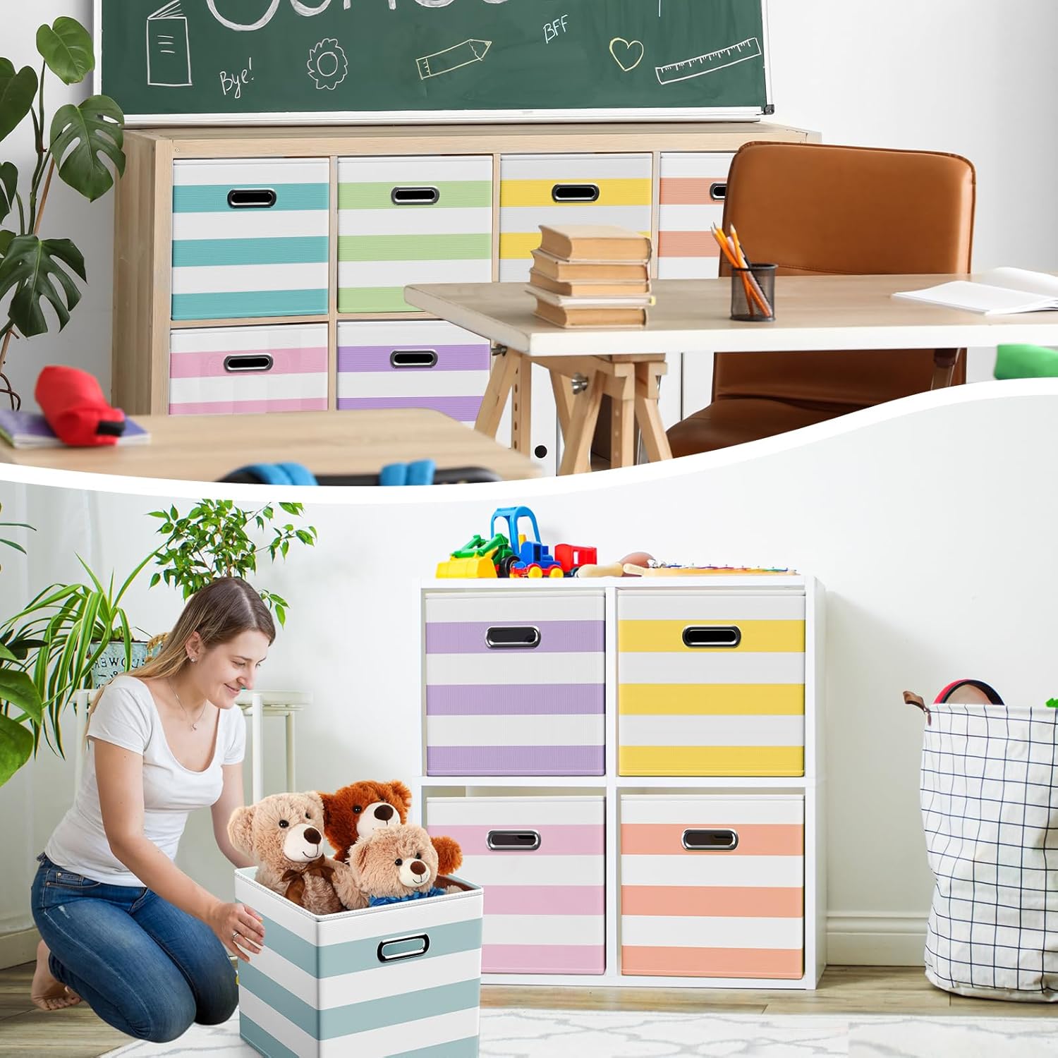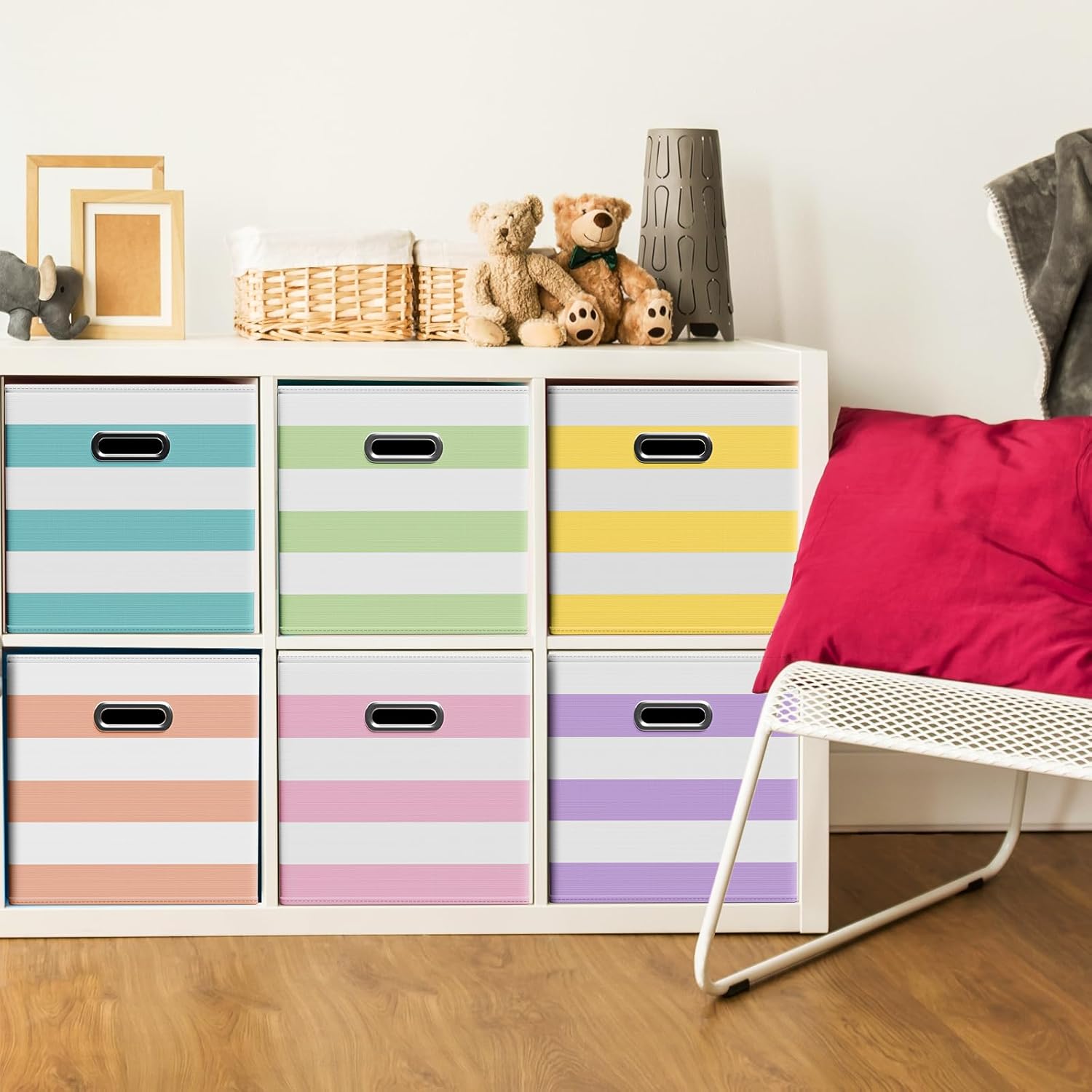 • Wide Range of Uses: whether you're organizing a nursery, playroom, office, or laundry area, these storage cubes are up to the task; They're ideal for stowing away clothes, books, toys, craft supplies, seasonal items, and more; These storage cubes adaptable design fits seamlessly into various spaces, including shelves, closets, bookcases, and desks
