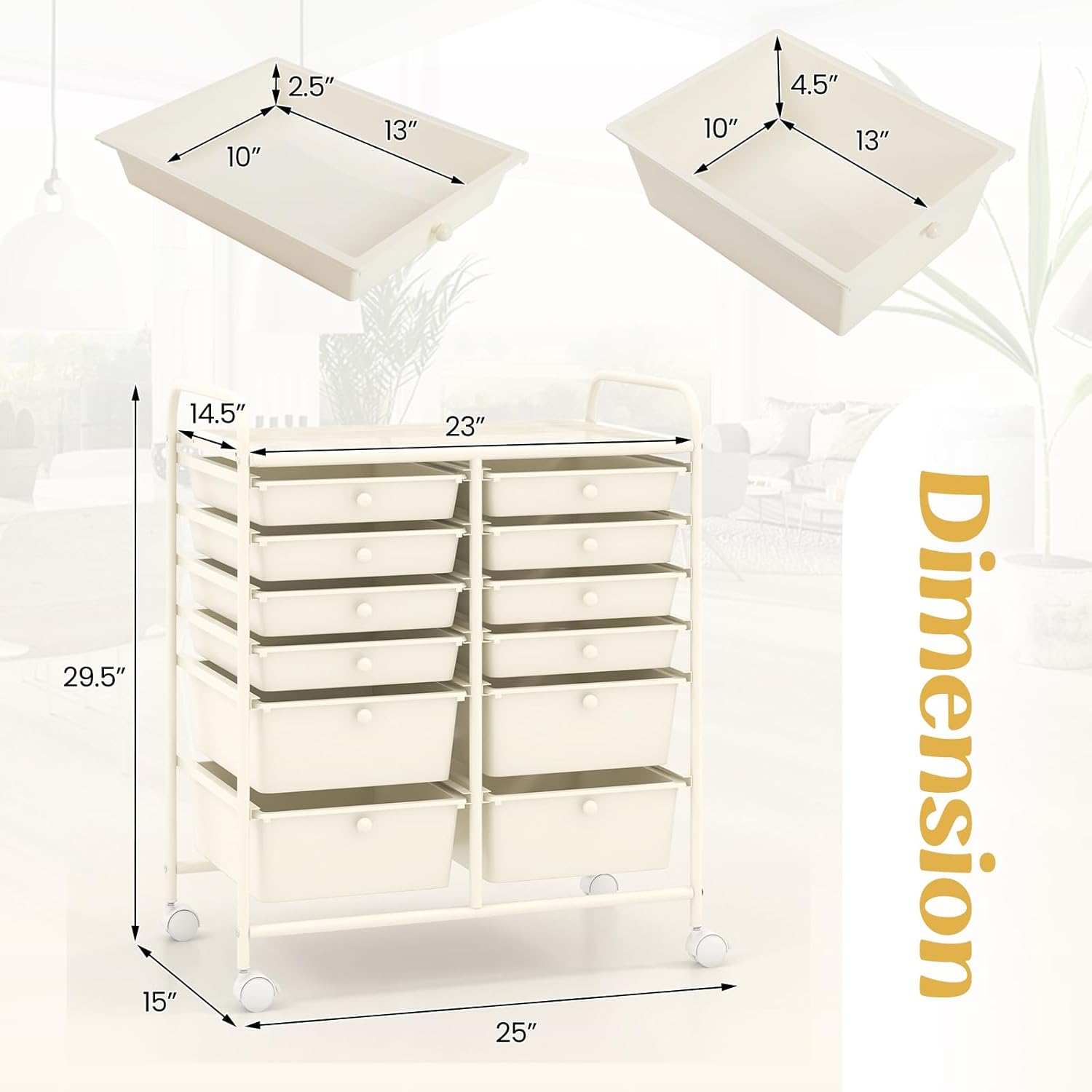 • 12 Drawers with Enough Space: Comes with 12 drawers, the rolling cart will provide ample space for you to store stuff in different categories. The 4 drawers are big and the other 8 are small. It is easy to find the thing you need if you keep them in order. With smooth slide, the drawers are easy to open or close.