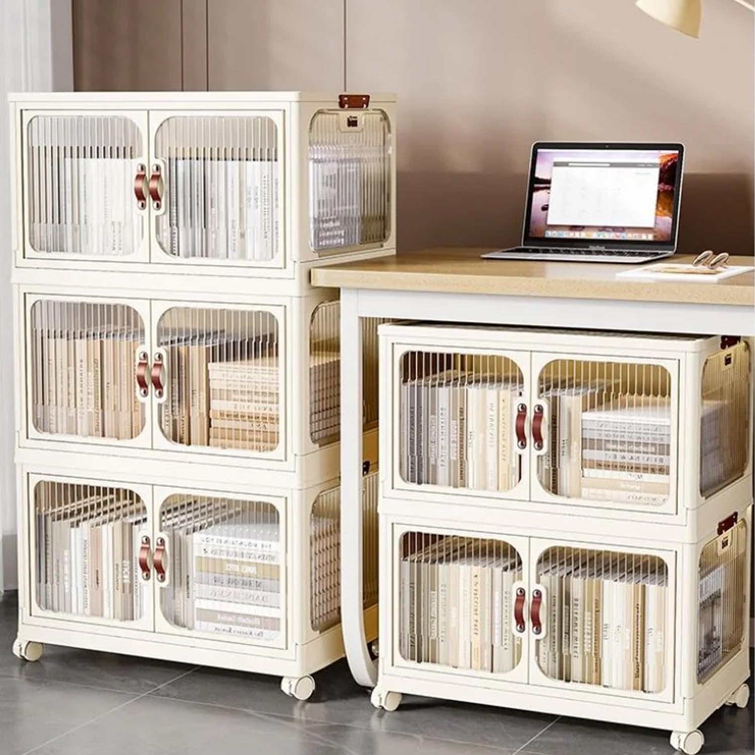 • 【Dual Access Design】 Experience convenience with storage bins that open two ways – via the top lid or the front door equipped with a magnetic latch to prevent accidental openings. The front door grants easy access to contents without disrupting the stack, shielding items from dust.