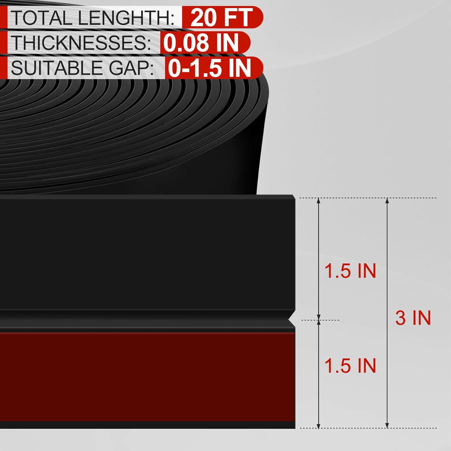 • 【Premium Material】Full door draft stopper is made of premium silicone material with high resilience and durability. Door draft seal increases in thickness to 0.08inch and fits gaps from 0-1.5inch. Door draft stopper for side of door is wear resistant, weather resistant and low odour. You can use it indoors and outdoors for a long time