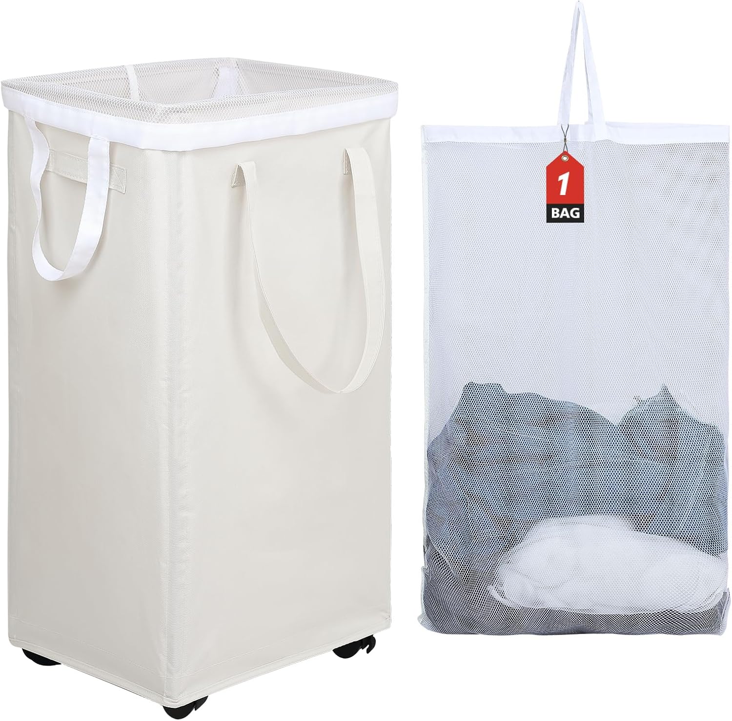 • REMOVABLE WASH BAG - Removable mesh laundry bag with handle can be put into washing machine directly for cleaning or move to laundry room quickly