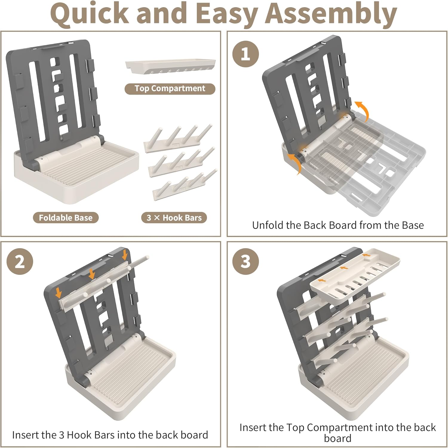 • 【Sturdy & Safe Materials】 Made from BPA-free, food-grade materials, this drying rack is not only safe for your baby but also built to withstand daily use. Compact in size at 8.8"D x 11.3"W x 13.7"H, it fits neatly in your kitchen.