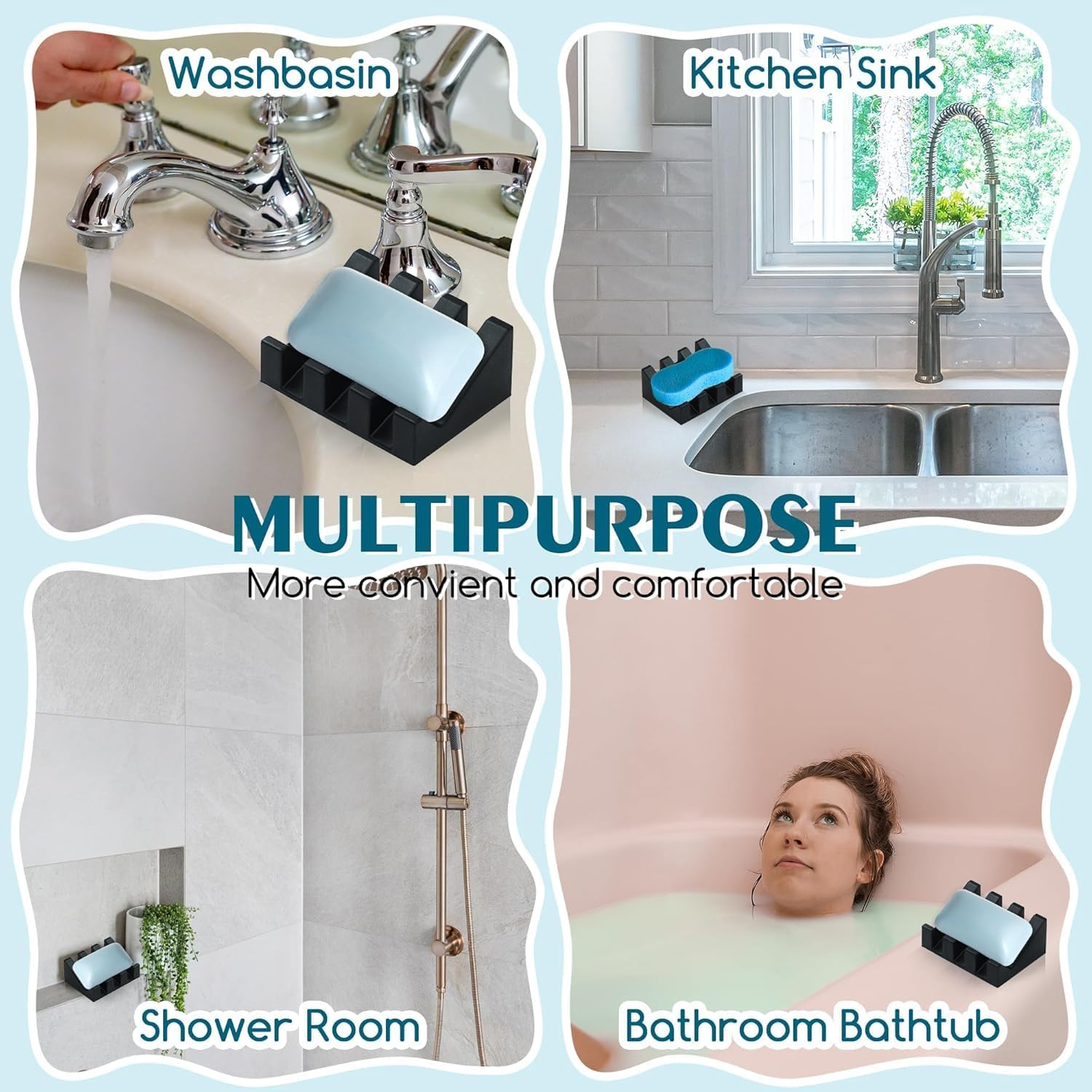 • Premium Material:Our soap savers is made of high quality soft silicone, non-slip and durable, flexible to the touch, easy to clean, and won't break, it is a great soap saver or dish washing sponge holder!