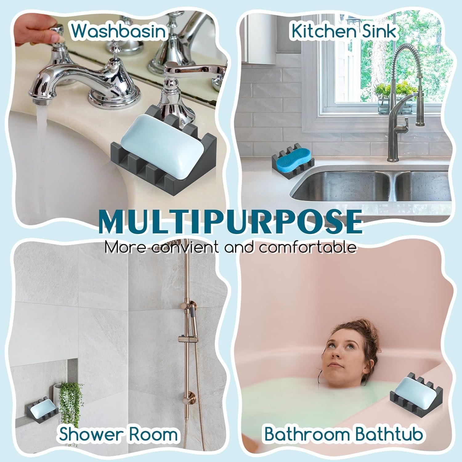 • Premium Material:Our soap savers is made of high quality soft silicone, non-slip and durable, flexible to the touch, easy to clean, and won't break, it is a great soap saver or dish washing sponge holder!