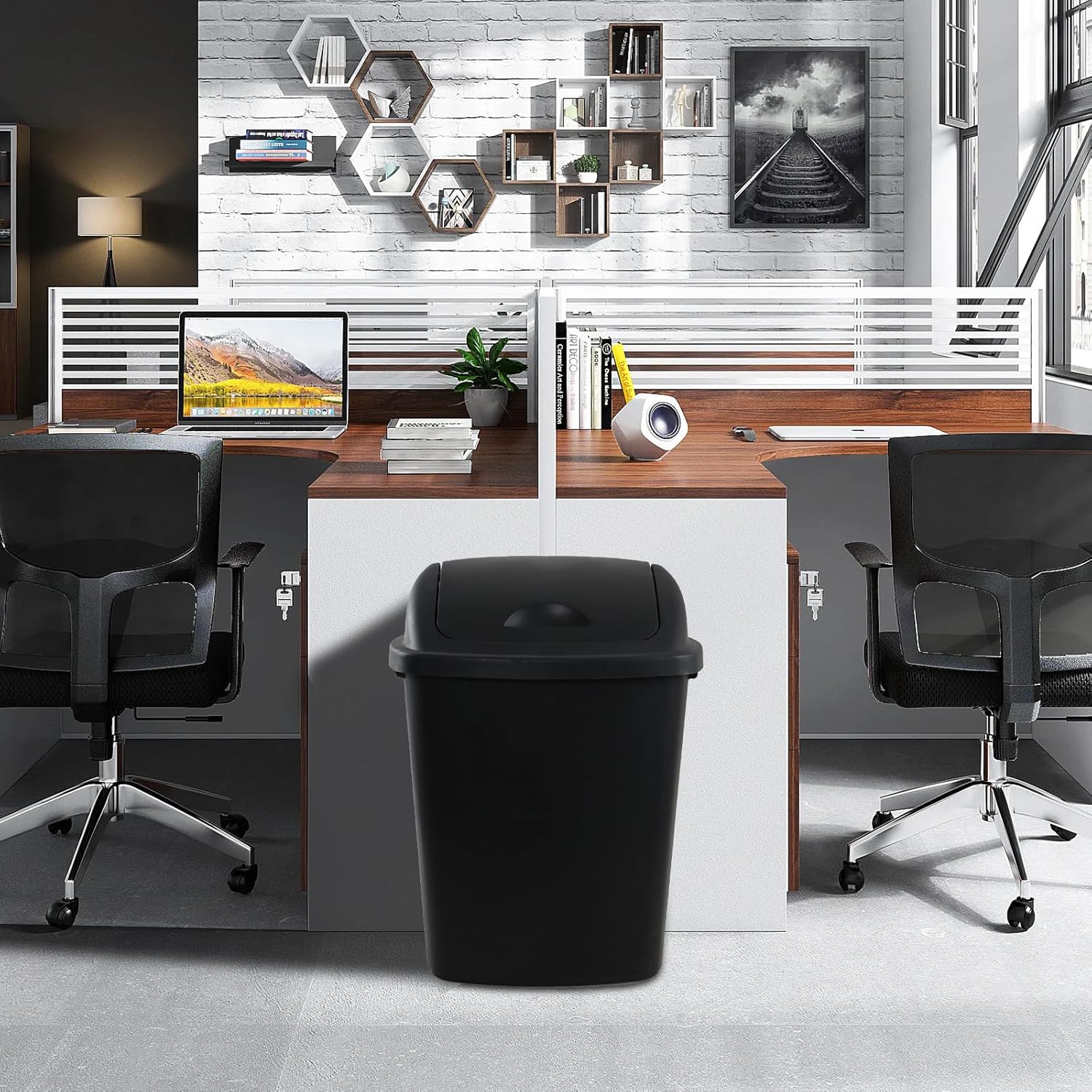 6 Gallon / 25 L Trash Can, 4-Pack, Plastic Swing Lid Garbage Waste Bins Container for Kitchen, Bedroom, Office, Living Room, Bathroom, Black