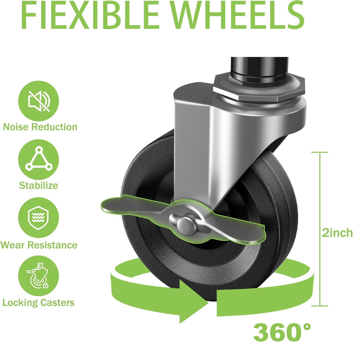 • 【360° Casters & Fixed Locks】3 Tier Rolling Utility Cart is equipped with 2-inch industrial-grade silent universal casters, which facilitates easy and smooth movement on different terrains, including two wheels with fixed locks, which can be fixed or moved at any time to ensure stability and safety during use