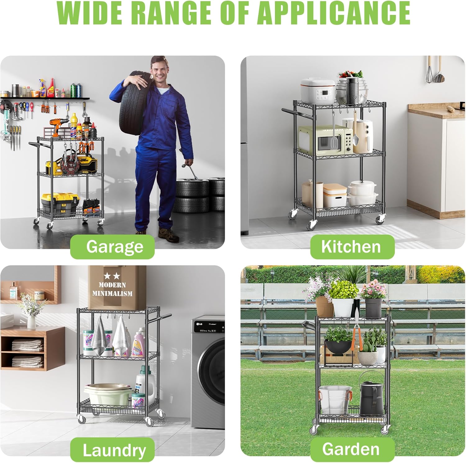 • 【Rust & Scratch Resistant】Kitchen Carts on Wheels surface adopts high-quality electroplating coating process, the surface is glossy and bright, scratch-resistant and wear-resistant, which can prevent rust, corrosion or water penetration, and is very suitable for use in kitchens, warehouses, garages, gardens, and offices