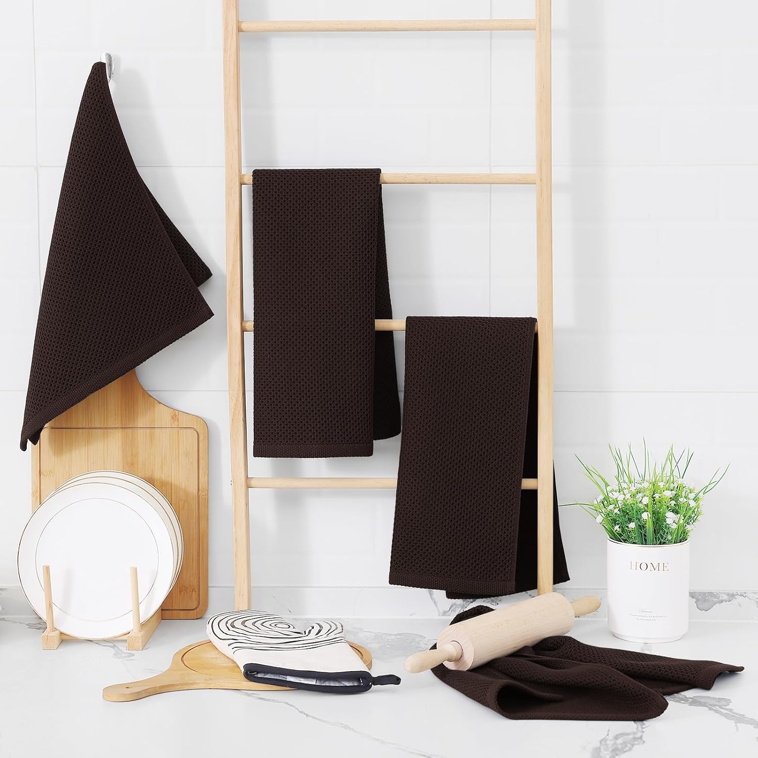 Homaxy 100% Cotton Waffle Weave Kitchen Dish Towels, Ultra Soft Absorbent Quick Drying Cleaning Towel, 13 x 28 Inches, 4-Pack, Dark Brown
