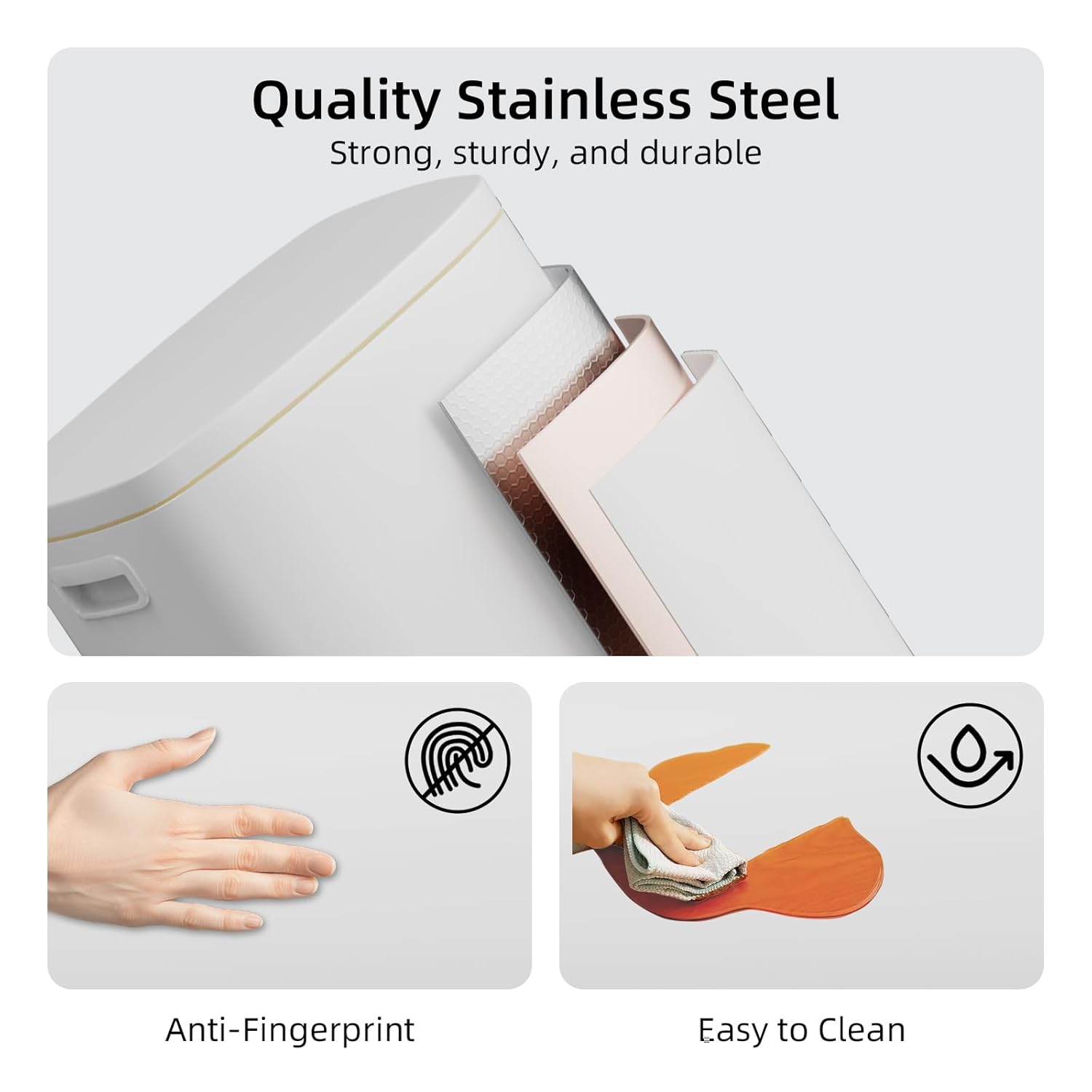• ✨ Fingerprint-Proof Stainless Steel: Sleek brushed steel resists fingerprints, water, and stains—simply wipe clean for a spotless look. Durable construction stands up to daily use in kitchen, bathroom, or office.