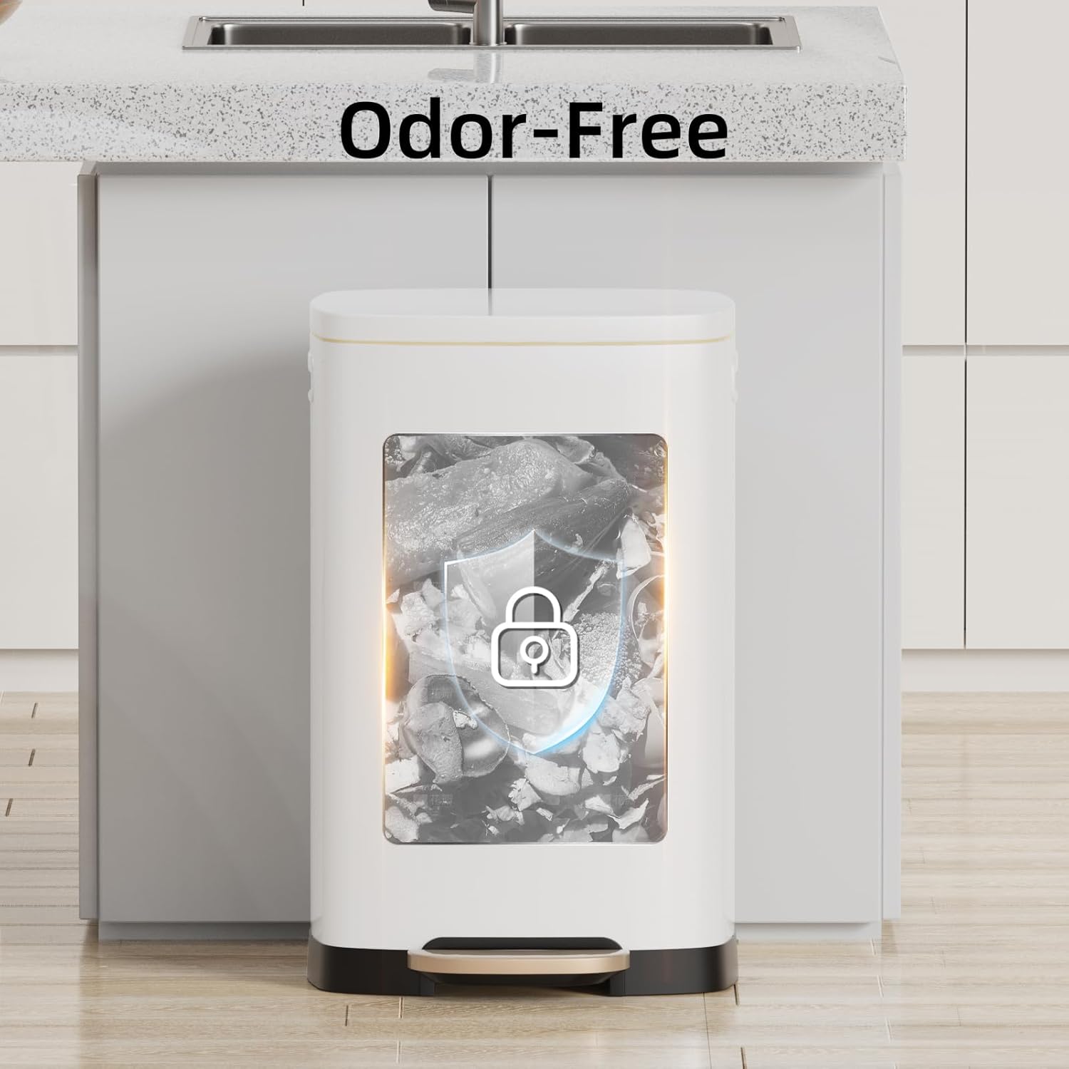 • 🔇 Silent Close & Stay-Open Lid: Quiet damping technology prevents slamming noises. Lid stays open at 90° for easy trash disposal or inner bucket cleaning—ideal for cooking and cleaning tasks.