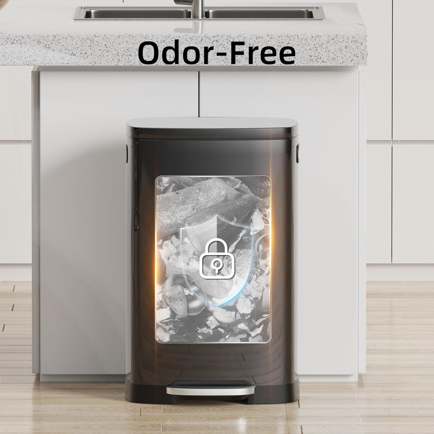 • 🚮 Large Capacity & Odor Lock Technology: 50L (13 Gallon) extra-large capacity reduces frequent trash runs, perfect for busy kitchens. Sealed lid with odor-blocking design traps smells, keeping your space fresh and clean.