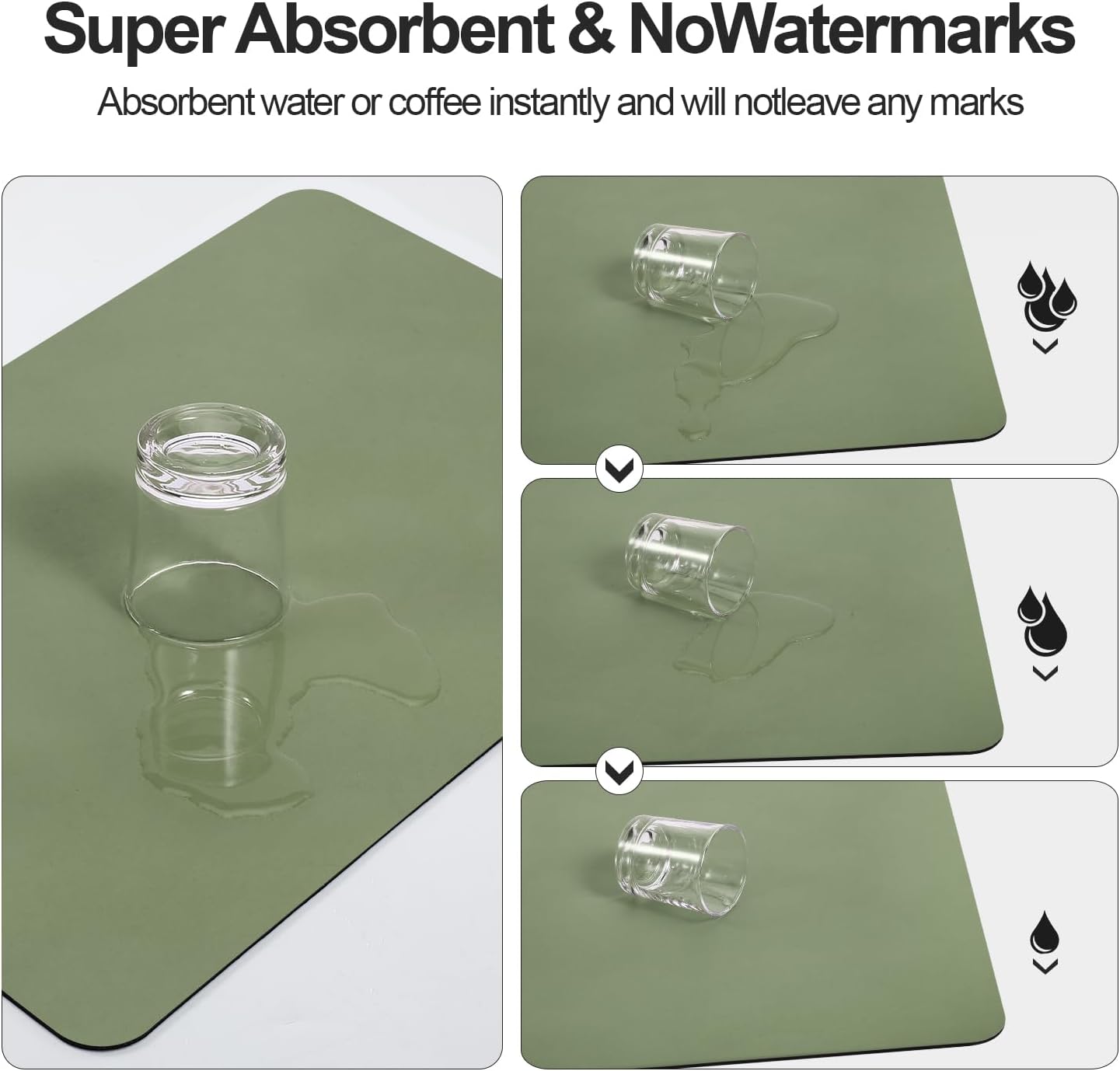 • 【Quick Absorption】 The soft diatomite dish drying mat instantly absorbs any liquid without staining your countertop.