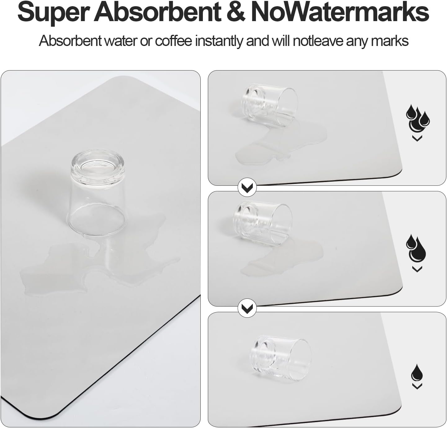 • 【Quick Absorption】 The soft diatomite dish drying mat instantly absorbs any liquid without staining your countertop.