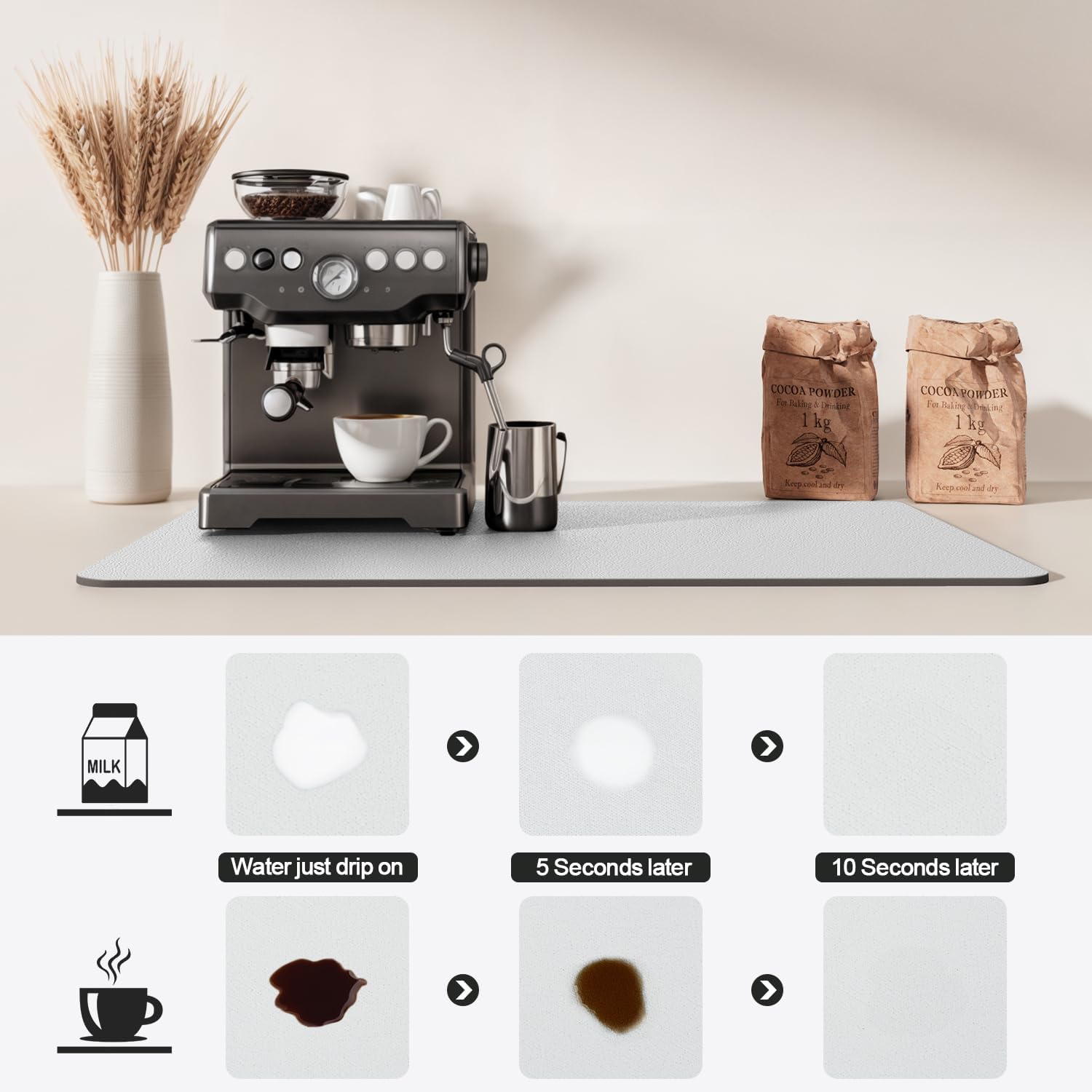 • 【Fast Drying】 The coffee mat features highly absorbent nano-material, allowing it to air-dry within seconds and keeping your countertop neat at all times.