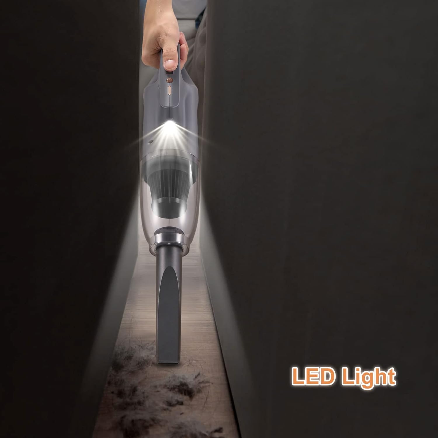 • {LED Light Design}: The bright LED light on the car vacuum handheld is more suitable for dark or corner cleaning and can better help clean deep corners or crevices.