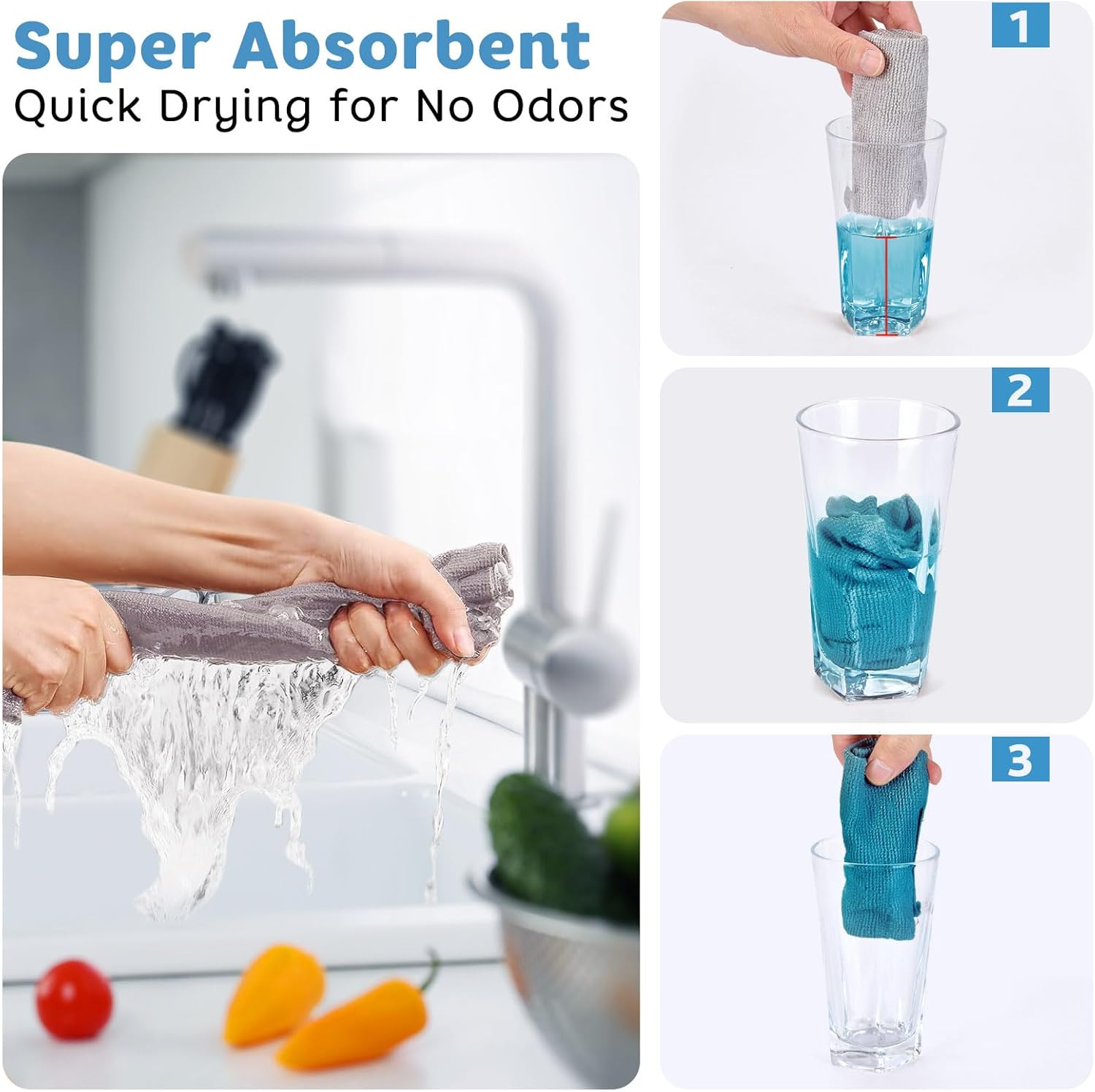 • Instant SOAK UP - Absorbing 4 times more than cotton cloths and 5 times their weight in water, these microfiber cleaning cloths are the all-purpose rags for glass, dishes, automotive,and smooth surfaces.They quickly tackle messes, oils, and liquids, outperforming sponges&conventional towels in speed and efficiency