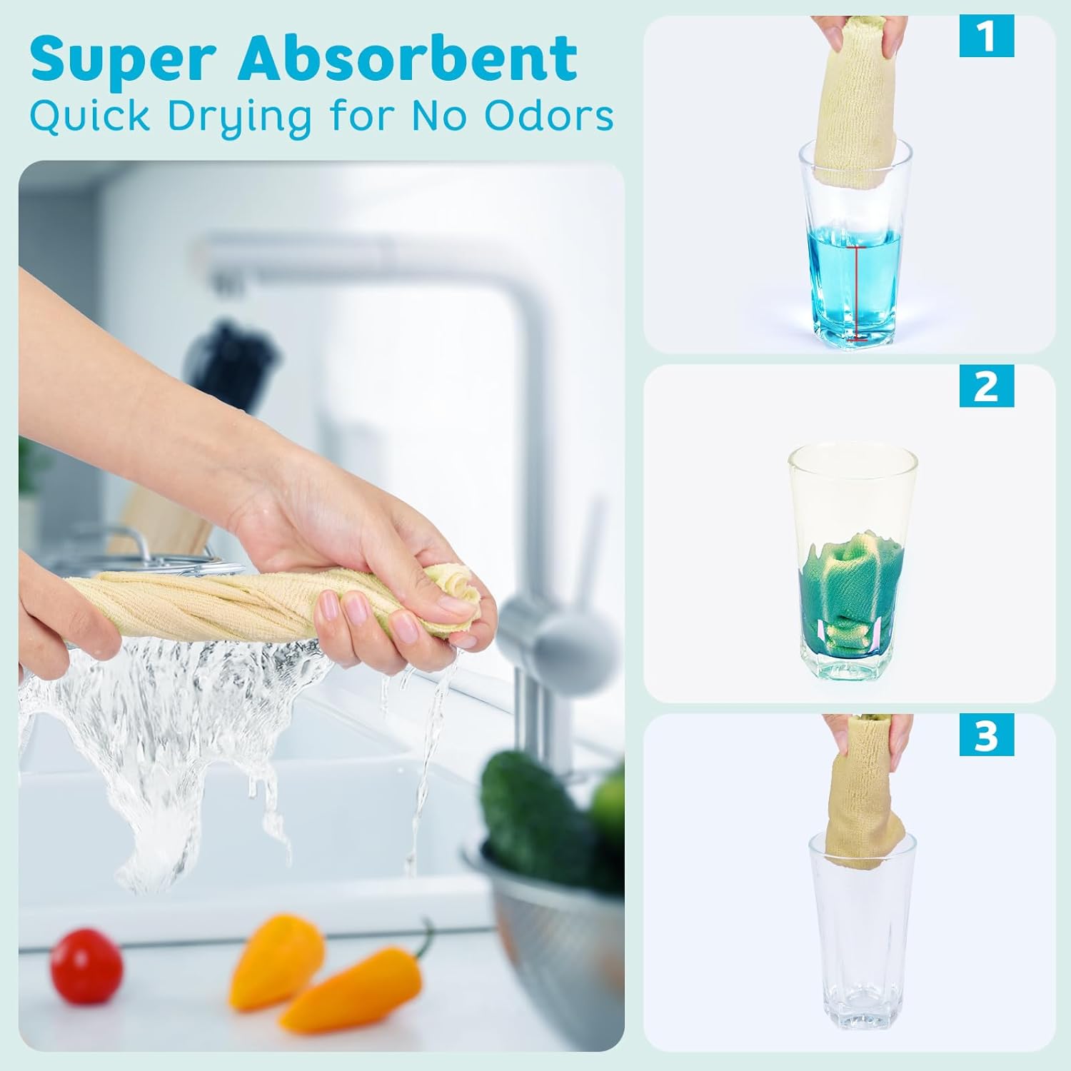 • Instant SOAK UP - Absorbing 4 times more than cotton cloths and 5 times their weight in water, these microfiber cleaning cloths are the all-purpose rags for glass, dishes, automotive,and smooth surfaces.They quickly tackle messes, oils, and liquids, outperforming sponges&conventional towels in speed and efficiency
