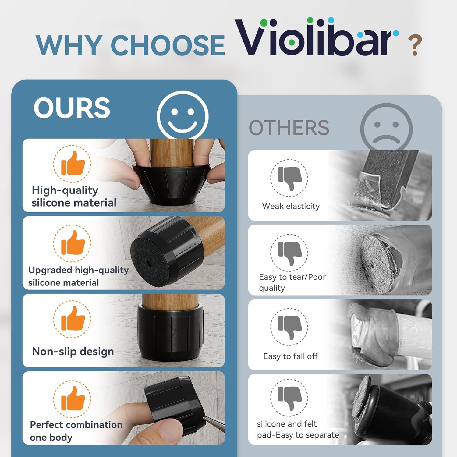 • ✅【Comprehensive Improvement】The chair leg floor protectors use special technology to combine the felt and silicone into one inseparable piece, which prevent the felt pad from falling off during use. We chose the premium quality silicone material which bonds the felt pad better, and won't tear easily when stretched.