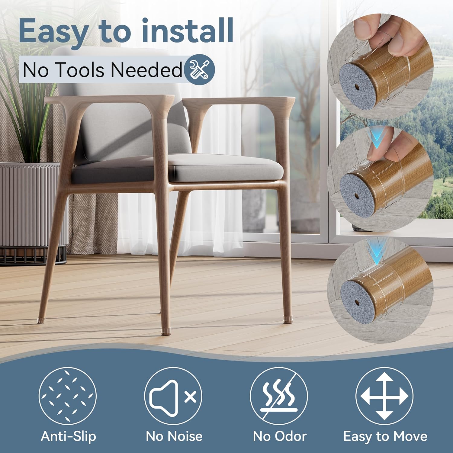 • ✅【Easy to Install】The non slip furniture slider is easy to install, without the use of tools. Just slip the chair feet protectors over your chair legs, and they’ll fit snuggly to stay in place! Much better than the felt or ones which have to be nailed on!