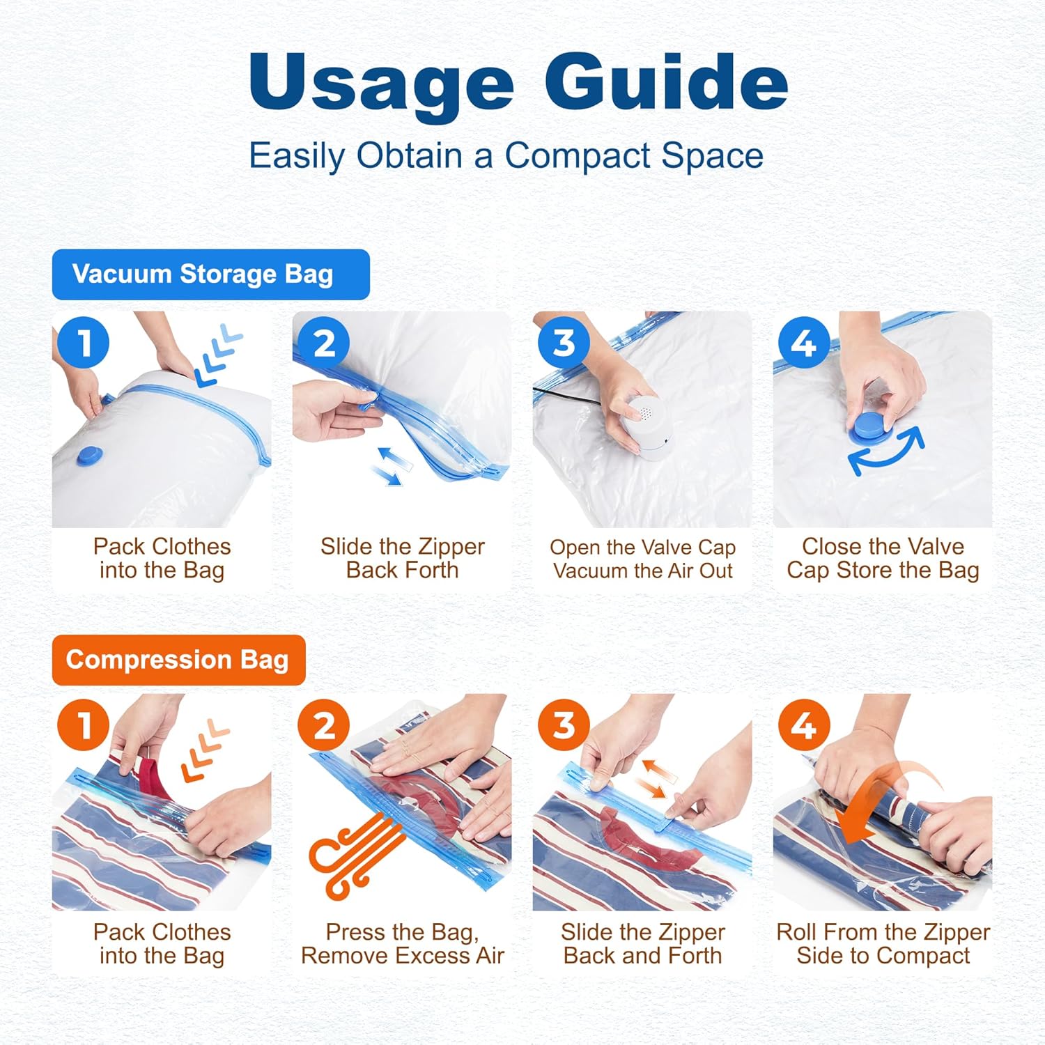 • Save 80% Space Effortlessly: Maximize storage efficiency with our vacuum bags! The electric pump removes air in 30-50 seconds, reducing bulky items like blankets, comforters, and seasonal clothes to 20% of their original size. Perfect for decluttering closets, organizing travel luggage, or discreet under-bed storage