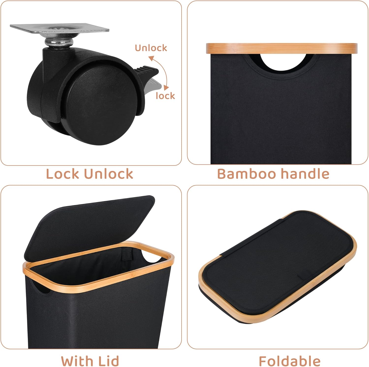 • 【Make Laundry Easier】 The bamboo handle is smooth and will not damage your hands during use. The lid of the laundry basket is designed to prevent odor diffusion, providing you with a clean environment. It offers more capacity for storing and organizing your clothes, helping you maintain a clean and tidy home or dormitory.