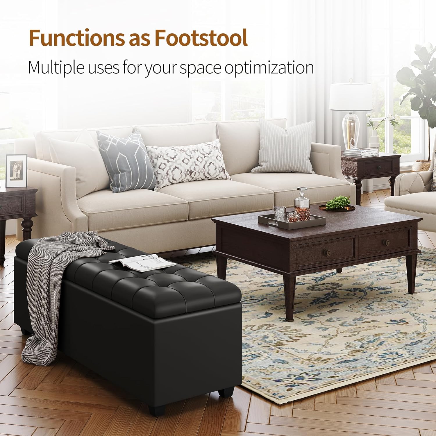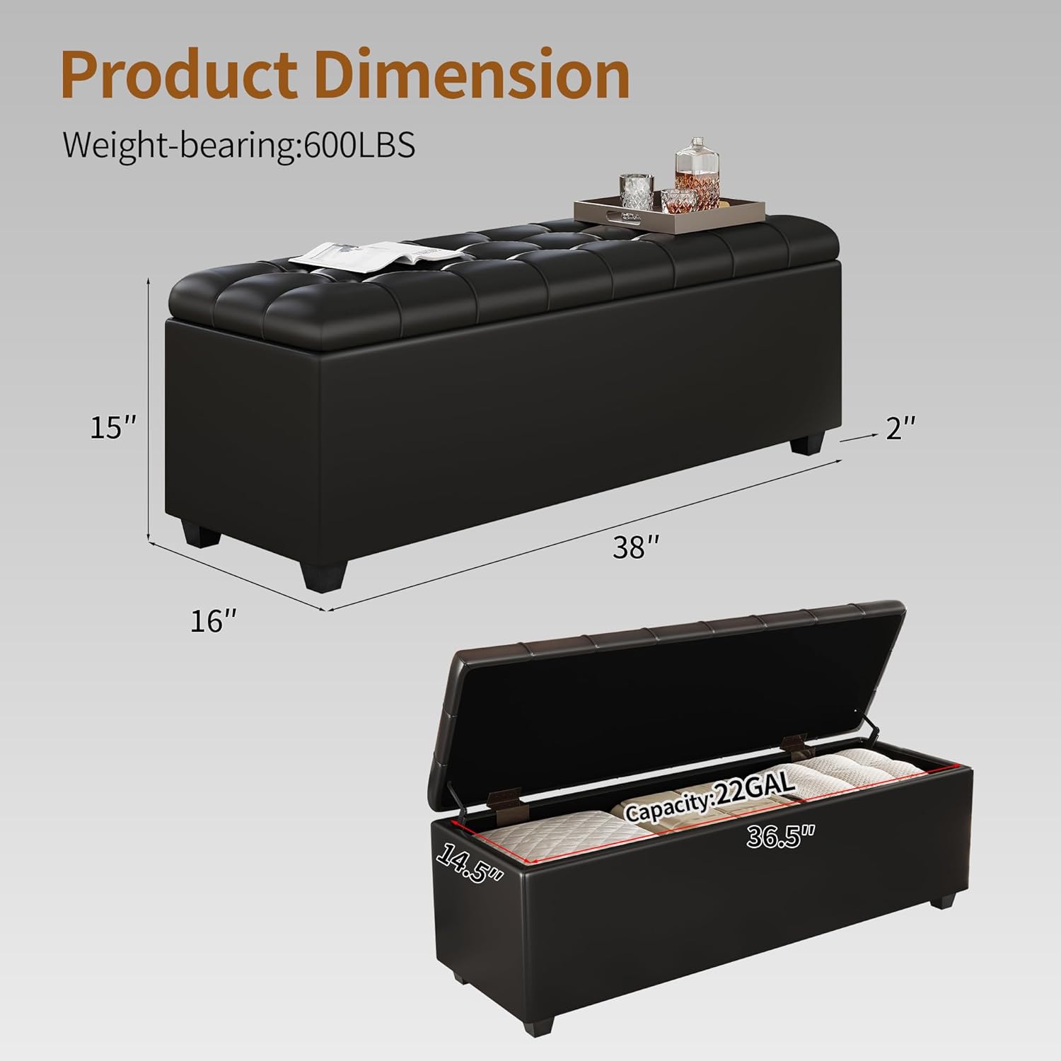 Ottoman with Storage 38 inches, Furniture End of Bed Storage Benches, Long Ottomans Bench with hinged lid, Bench seat Trunk for Foot Rest in Bedroom, Living Room (Black)