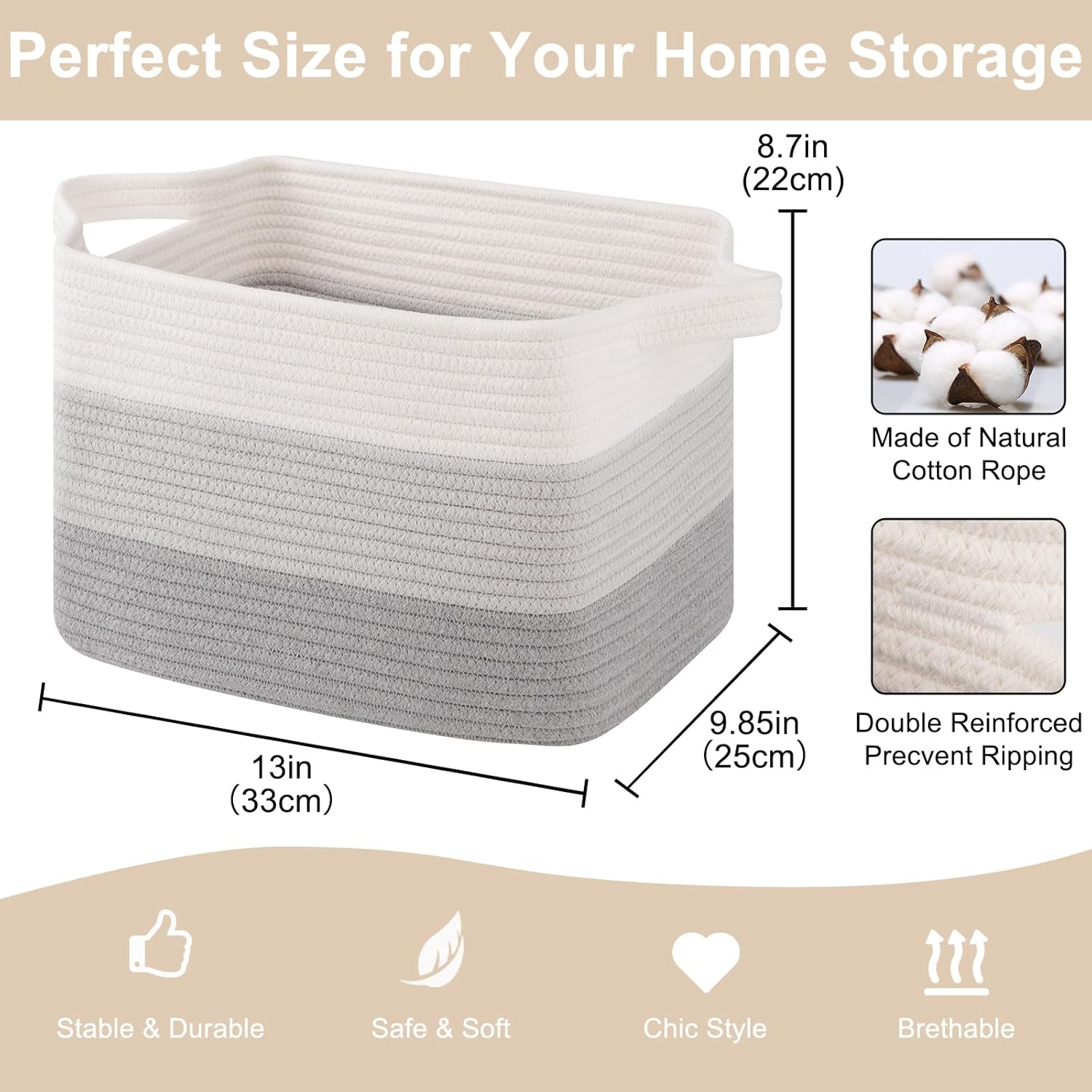 Storage Baskets for Organizing, Woven Baskets for Shelves, Rectangle Decorative Organizer for Storage Clothes, Toy, Books, Towels Nursery Bins 3 Pack (Gradient Grey)