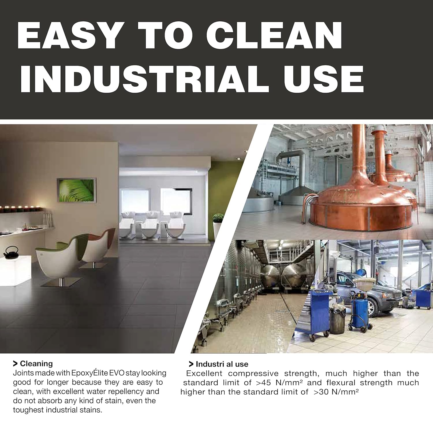 • FOR EXTREME CONDITIONS: Our epoxy grout is made for superior resistance without degrading. It withstands aggressive substances and heavy traffic in dairies, food factories, showers, whirlpools, and more.