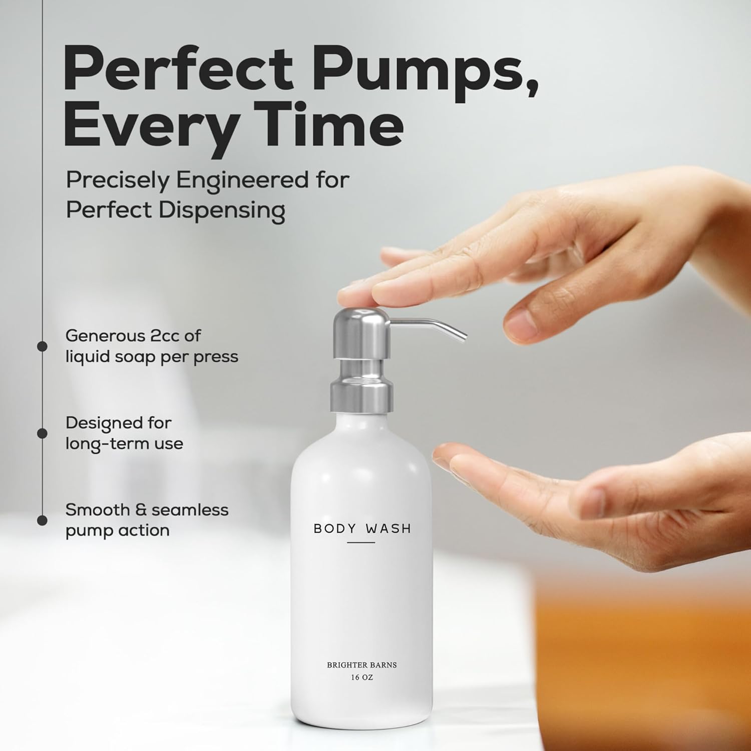 • AMERICAN DESIGN, UNCOMPROMISING QUALITY - Crafted with meticulous attention to detail, our aesthetic shower dispensers features a set of 3 ultra-durable, sturdy and shatterproof 16oz PET plastic shower bottles and corrosion-proof 304G stainless steel pumps. All designed in the USA to provide unbeatable quality and enduring style that you can trust.