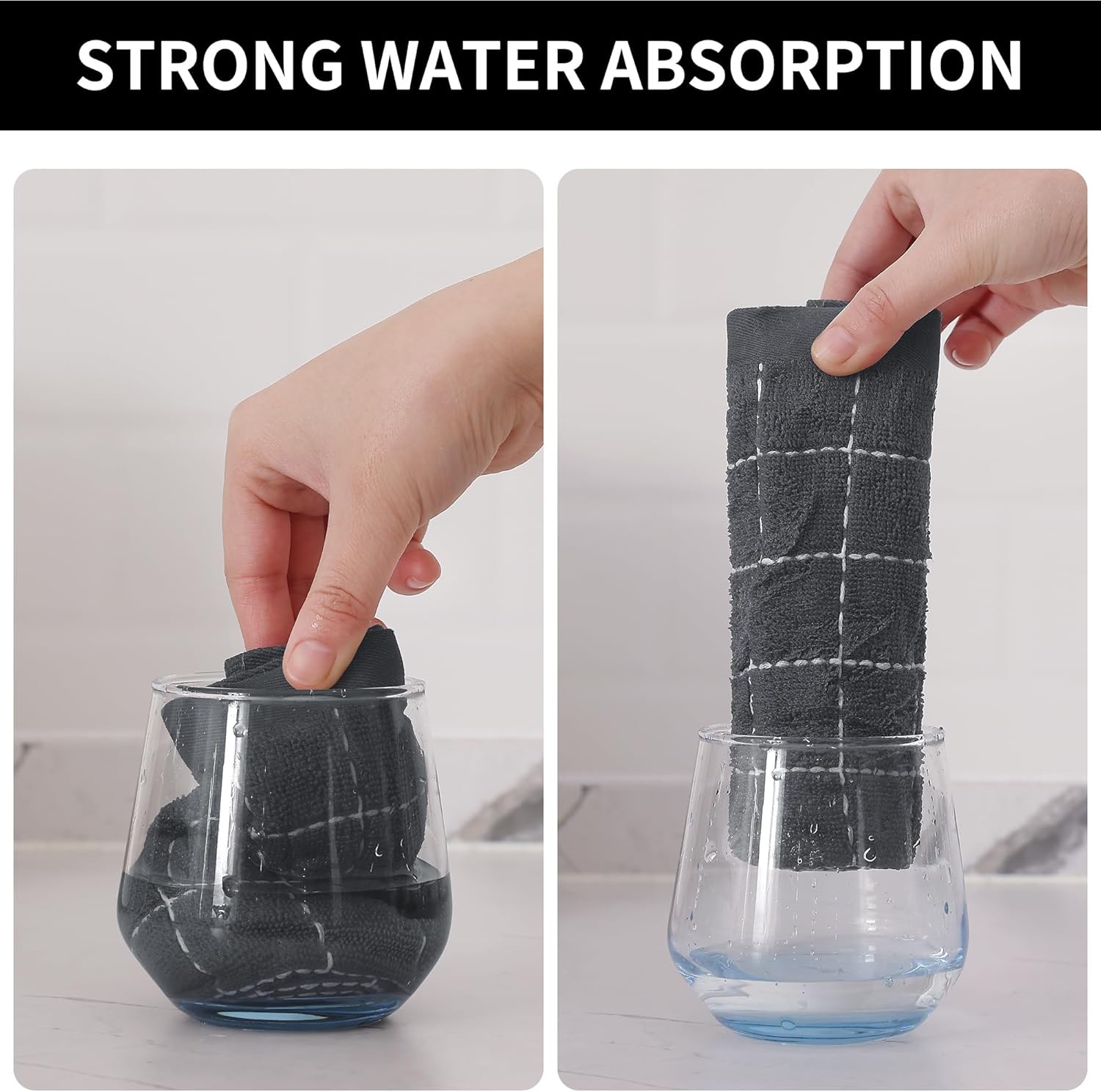 • Super Absorbent: These dish cloths are designed with upgraded terry structure, are lightweight, highly absorbent, and dry quickly. They can easily absorb plenty of liquid or wipe oil stains