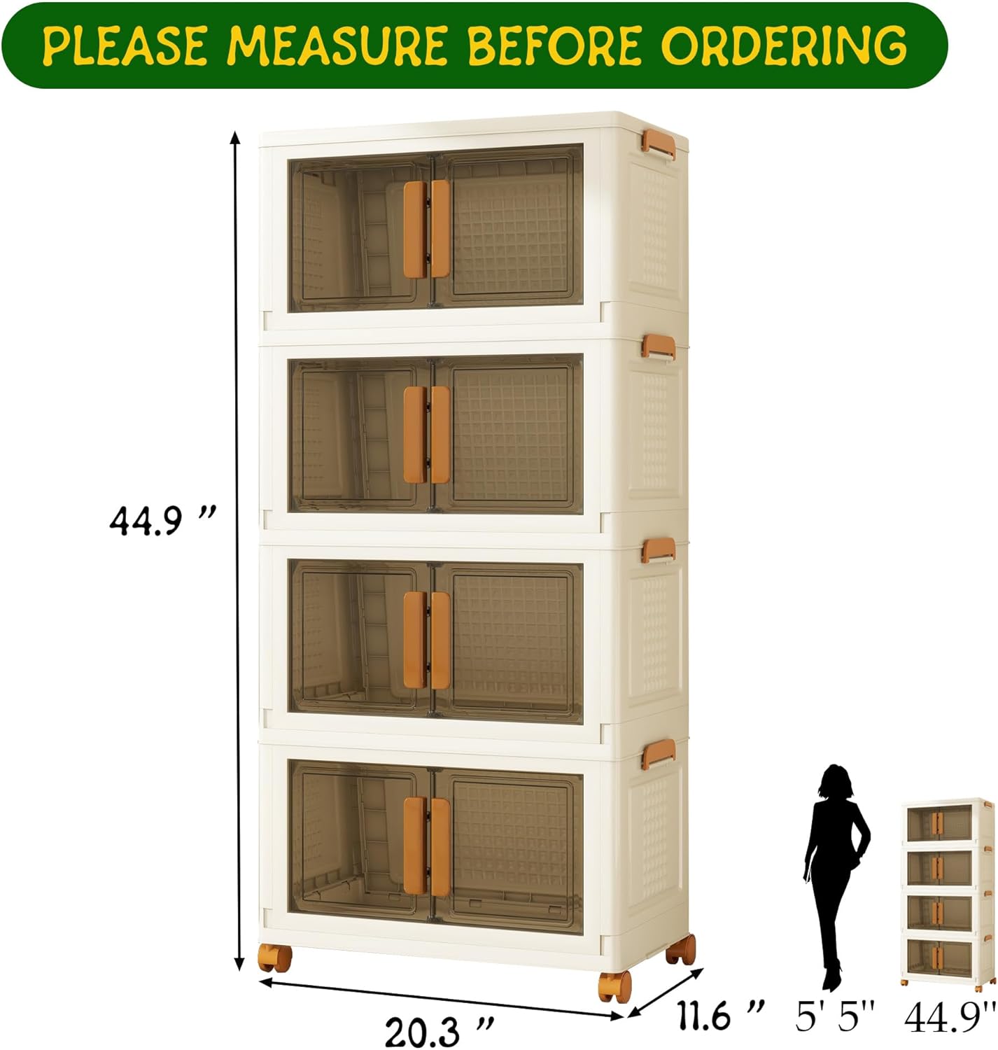 4 Tier Stackable Plastic Storage Bins with 1 Lid 45 QT/Tier, Collapsible Plastic Box Storage Bin with Wheels, Home Containers Boxes Closet Organizers for Living Room, Office, Dorm