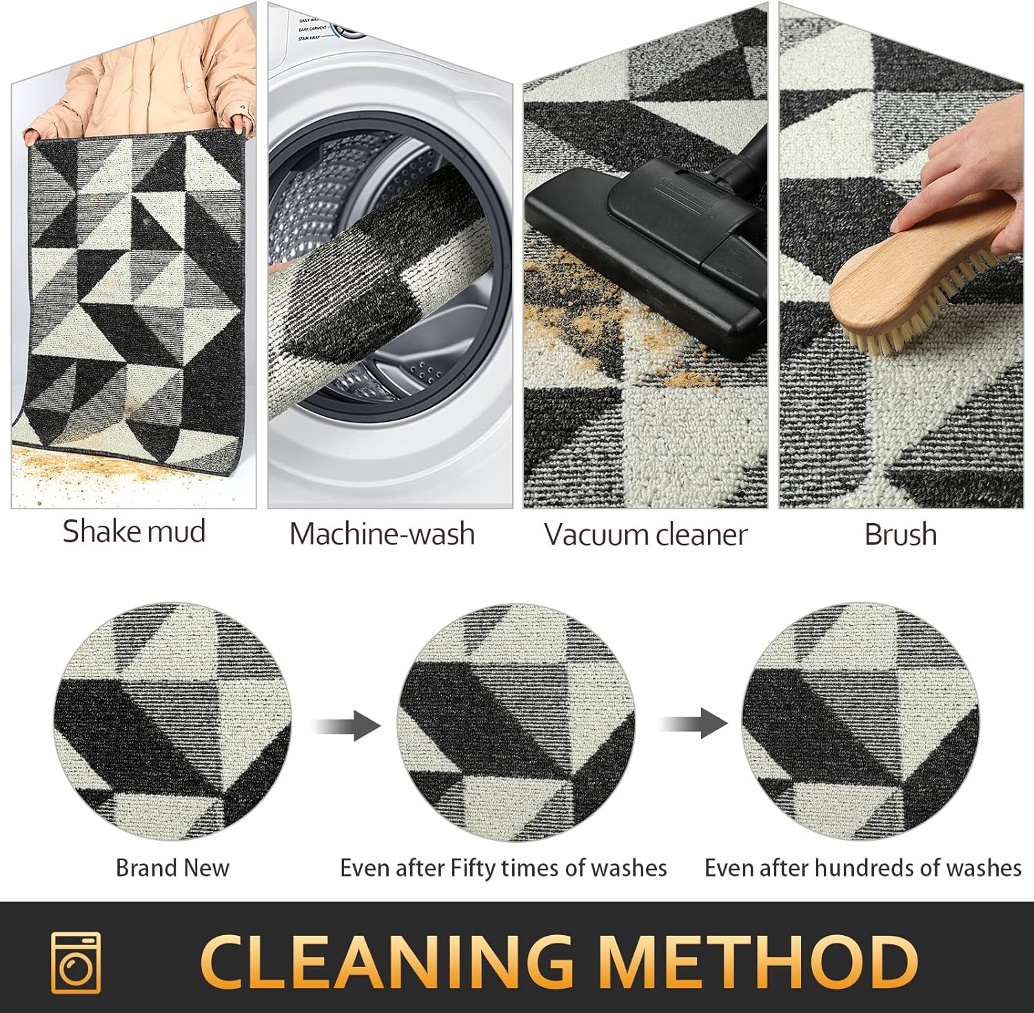 • EASY TO CLEAN: The unique rib fabric design removes dirt from shoes easily. When your doormat gets dirty, first shake it off outdoors or over your garbage bins, then sweep with a broom or vacuum regularly or use a garden hose to rinse the mat outdoors. For deeper clean: machine washable, use water under 86 (℉) / 30 (℃). Do not iron. Do not bleach. Do not expose it to the sun for a long time.