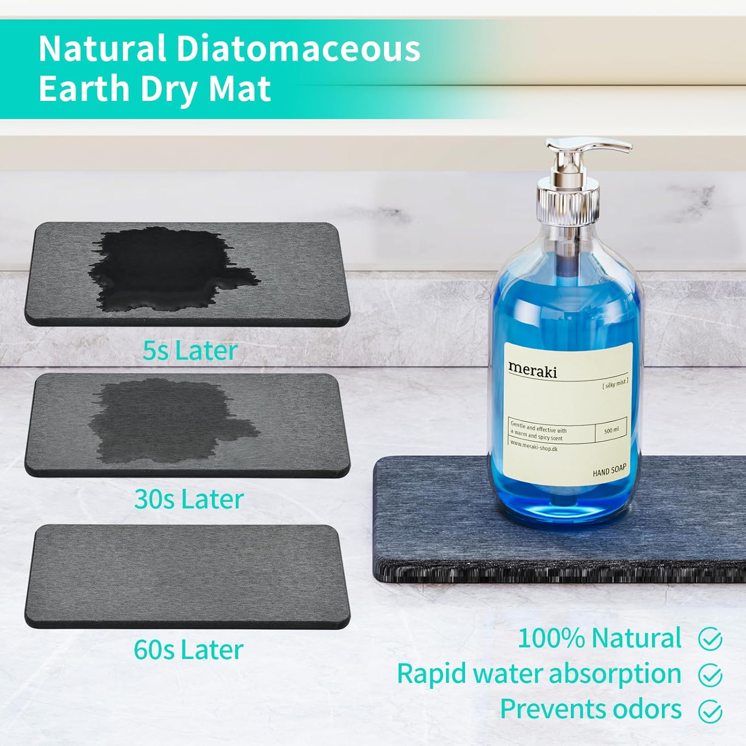 • [Instant Dry Sink Caddy]: The bottom of our sponge holder is made of diatomaceous earth absorbent mat, which automatically absorbs water and dries in 60 seconds, no longer need to manually pour water.The mat is removable, so you can remove it for cleaning