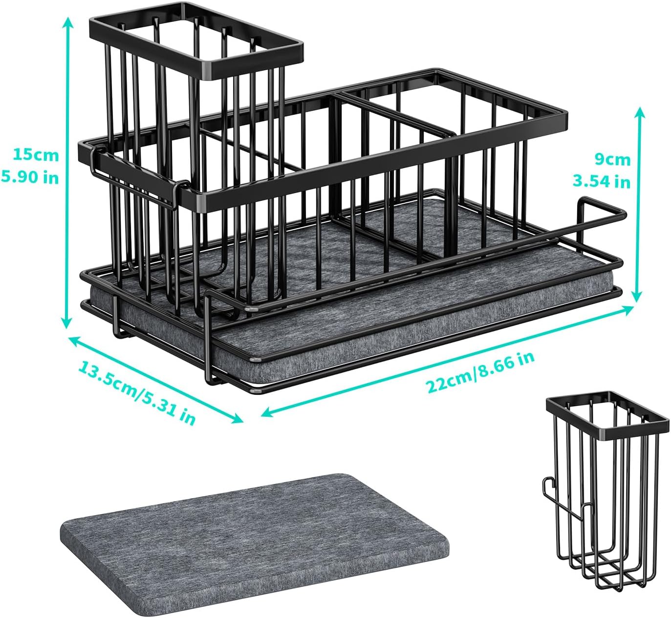 • [No Installation Required & Versatile]: Our dish brush holder doesn't need to be installed, you can place our kitchen caddy sink organizer anywhere on your kitchen countertop as needed, or any other space where you need to put things
