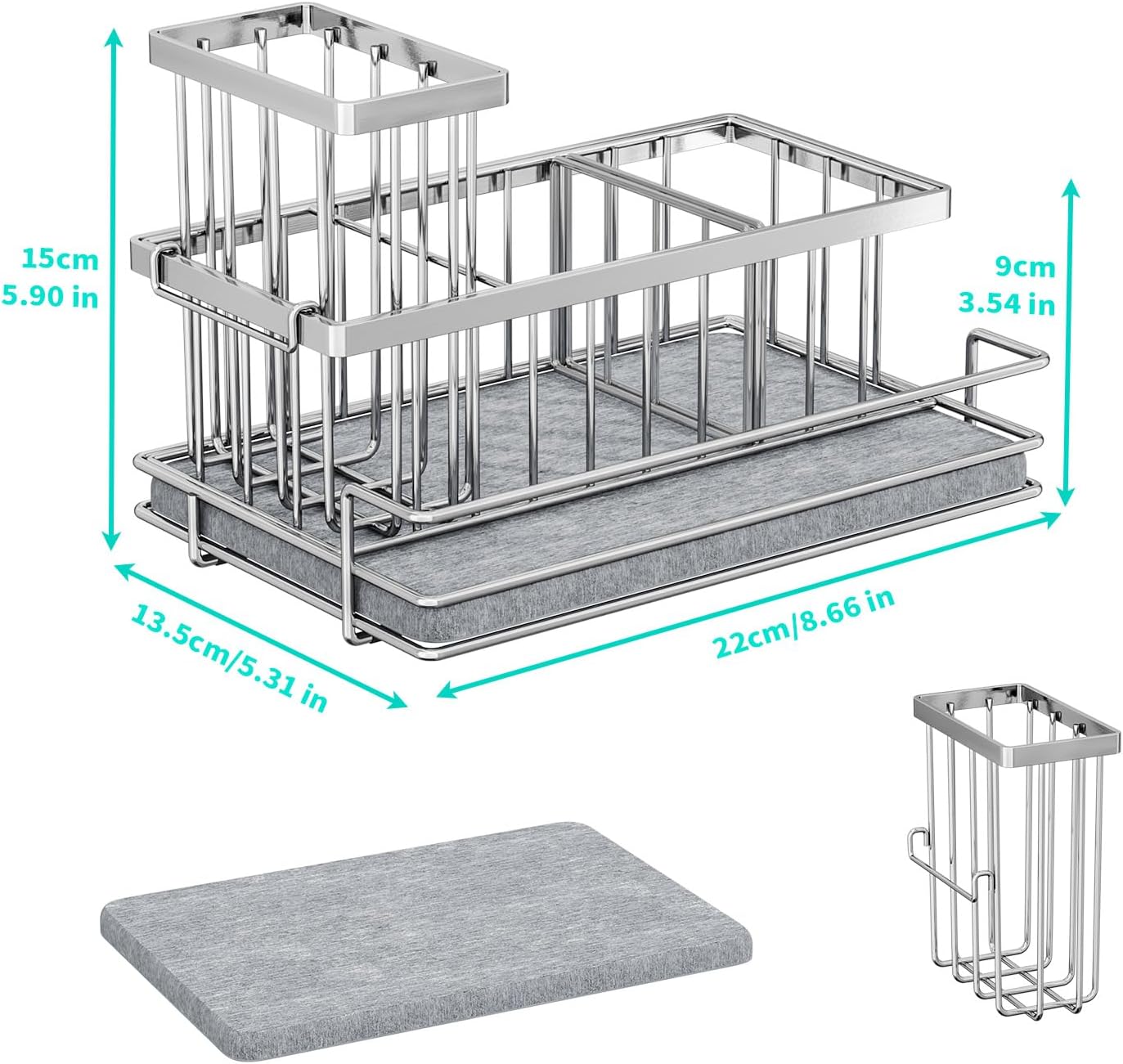 • [Anti-slip Kitchen Caddy]: We know many customers will worry about instability of kitchen sponge holder. Therefore, our kitchen sink accessories added non-slip rubber feet. No need to worry about sliding and stability of this sponge caddy