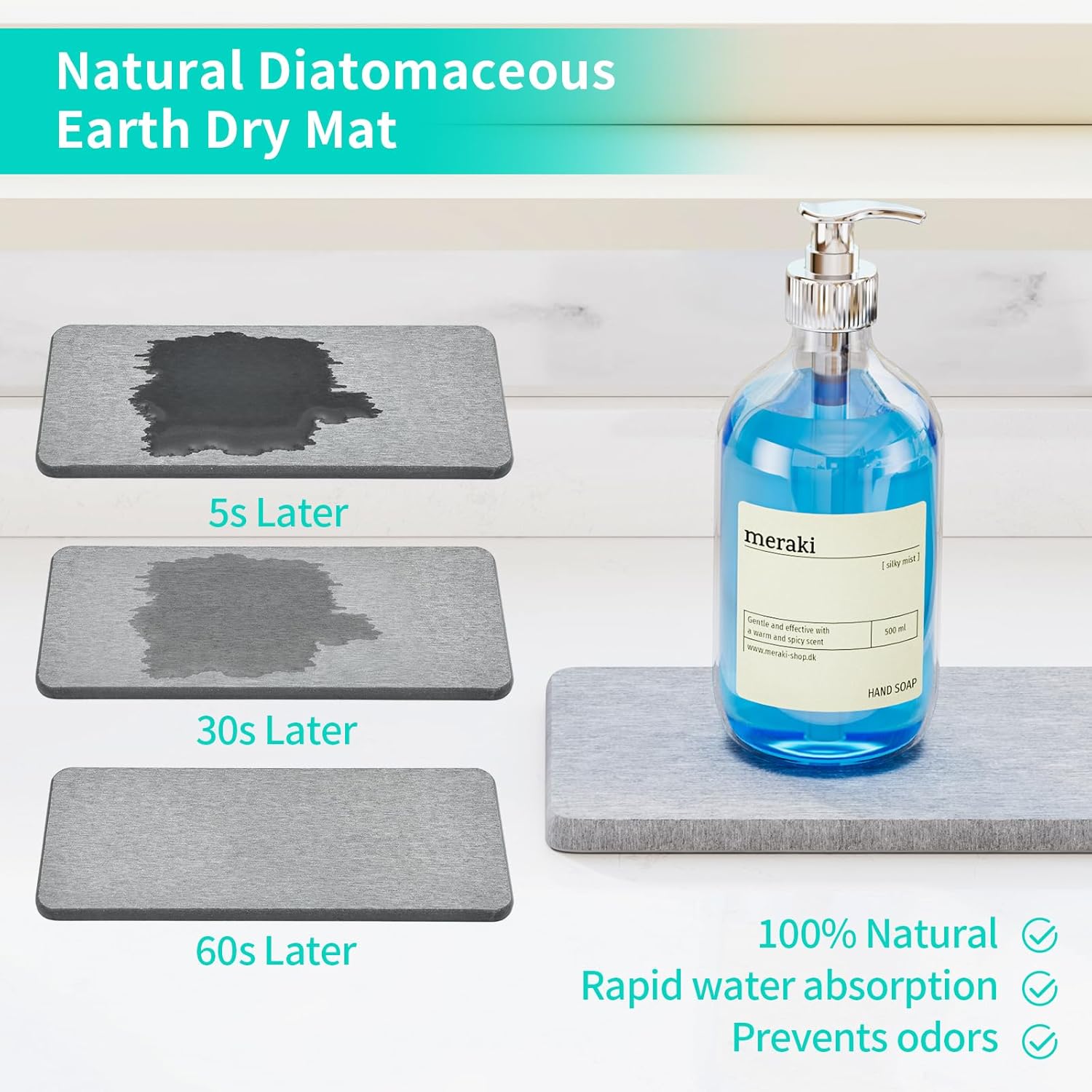 • [Instant Dry Sink Caddy]: The bottom of our sponge holder is made of diatomaceous earth absorbent mat, which automatically absorbs water and dries in 60 seconds, no longer need to manually pour water.The mat is removable, so you can remove it for cleaning