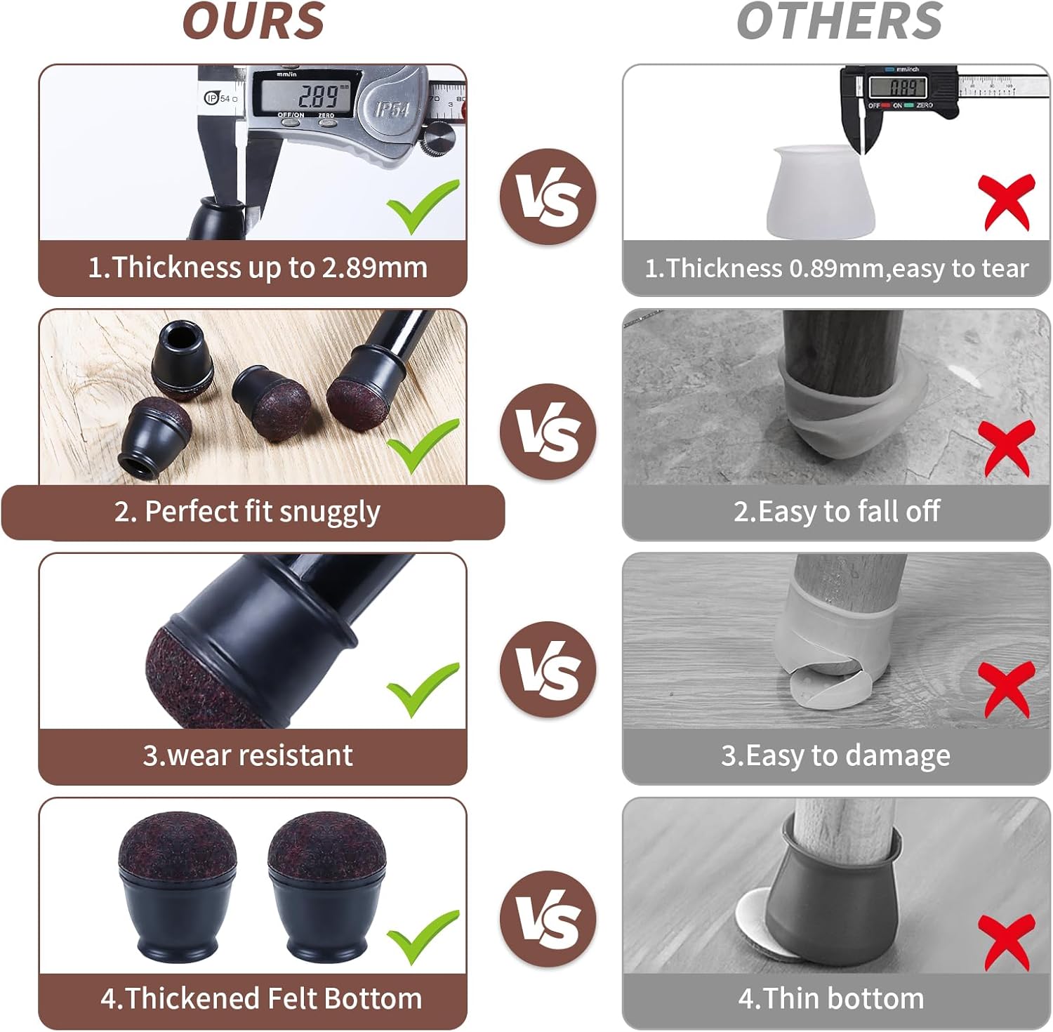 • ☛【Reduce Noise and Prevent Scratches】- Dining table leg covers for hardwood floors more durable to friction and no scratches. Felt furniture pads on the bottom reduces resistance and allow easy, slide easily and reduce noise.