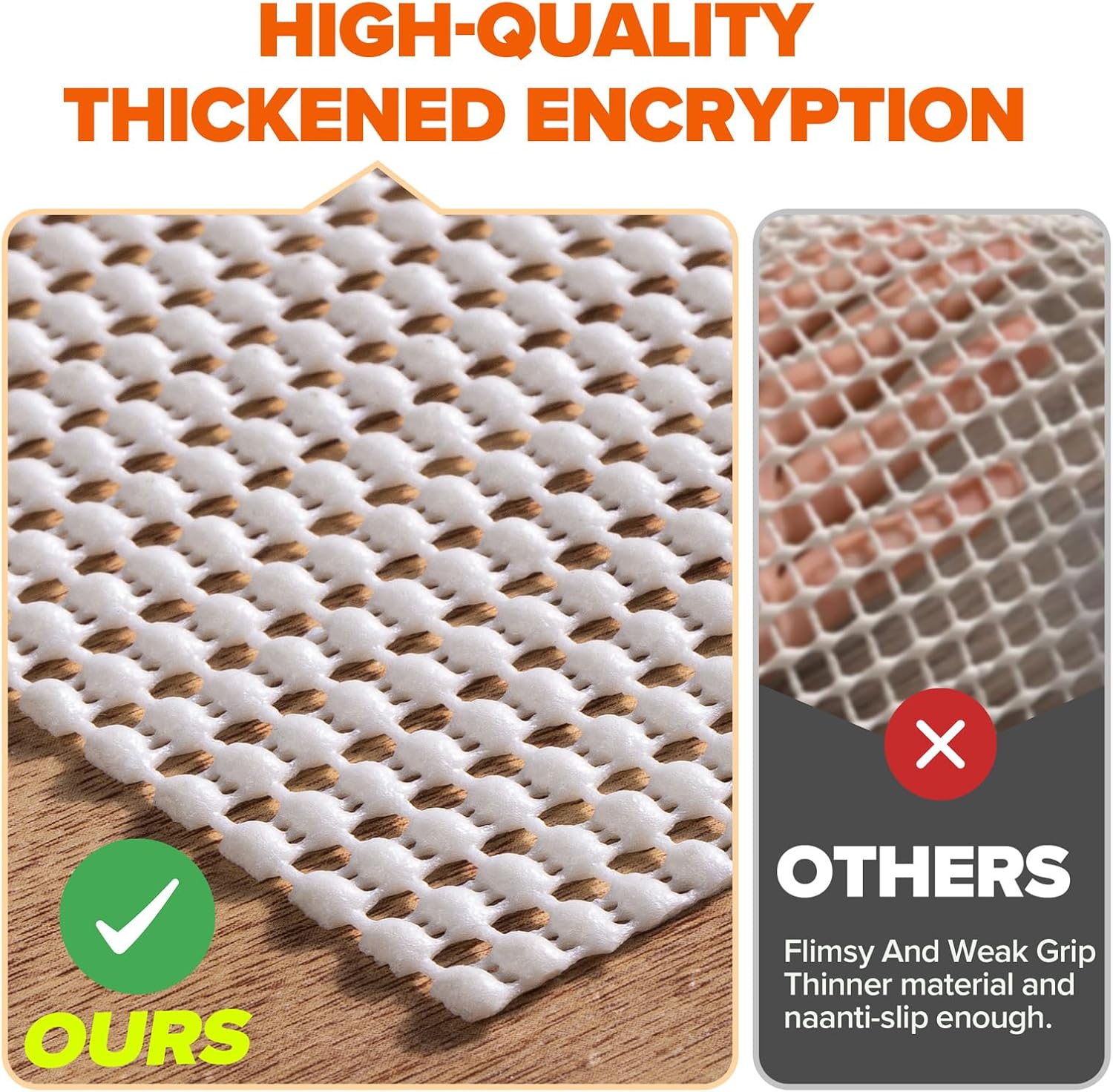 • Versatile Use: This versatile rug pad can be used not only for rugs but also for furniture, sofa cushions, mattresses, and even in kitchen cabinets or drawers for non-slip protection. Its lightweight and non-adhesive design make it easy to install, remove, and will not leave any sticky residue.