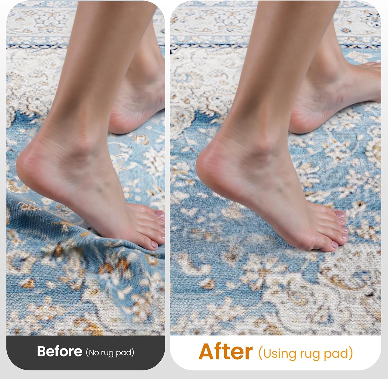 • Strong Non-Slip Grip: Designed with a powerful double-sided grip, this rug pad effectively secures your carpet, preventing slipping, bunching, or shifting. Whether in high-traffic areas or for daily use, it keeps your carpet flat and stable, providing a safer experience.