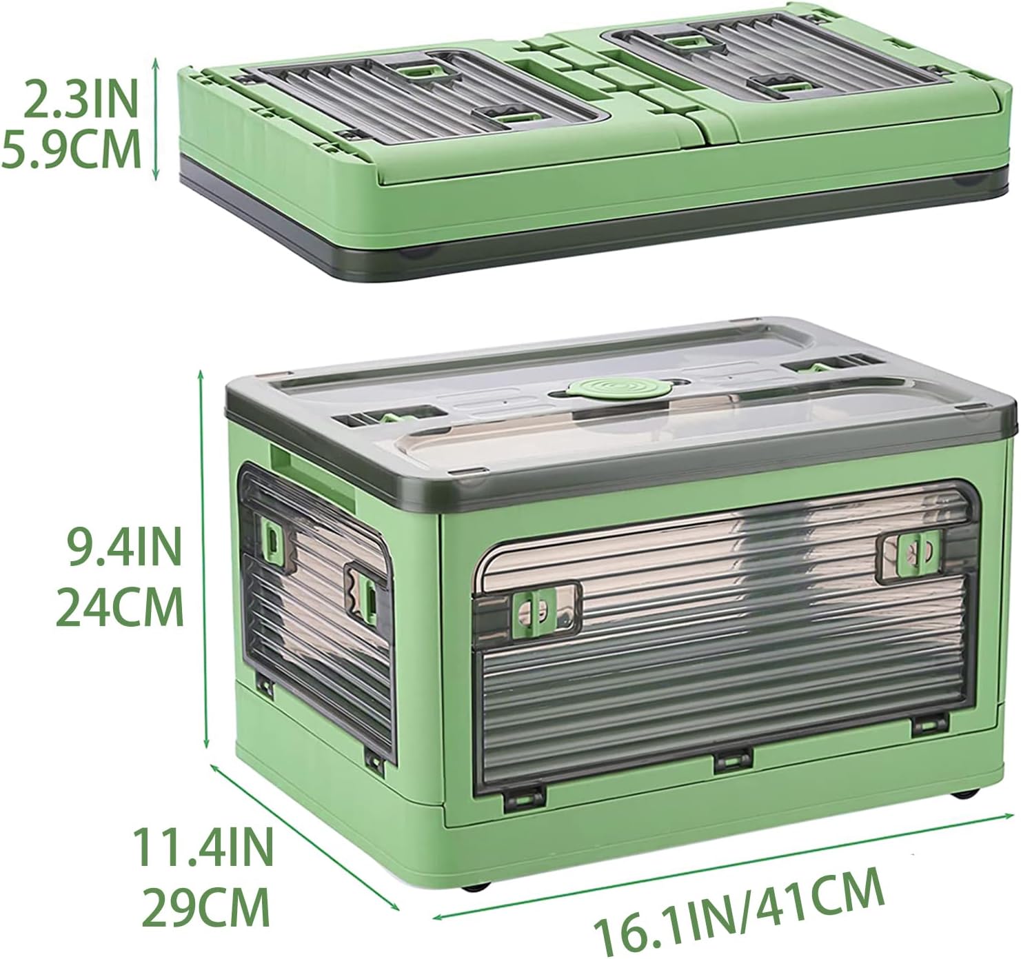 • [Product size]The storage bin measures 16.1 inches long, 11.4 inches wide & 9.4 inches deep(Fold 2.3 inches),The transparent container is durable and made of high-quality plastic materials with no odor and no harm to the body