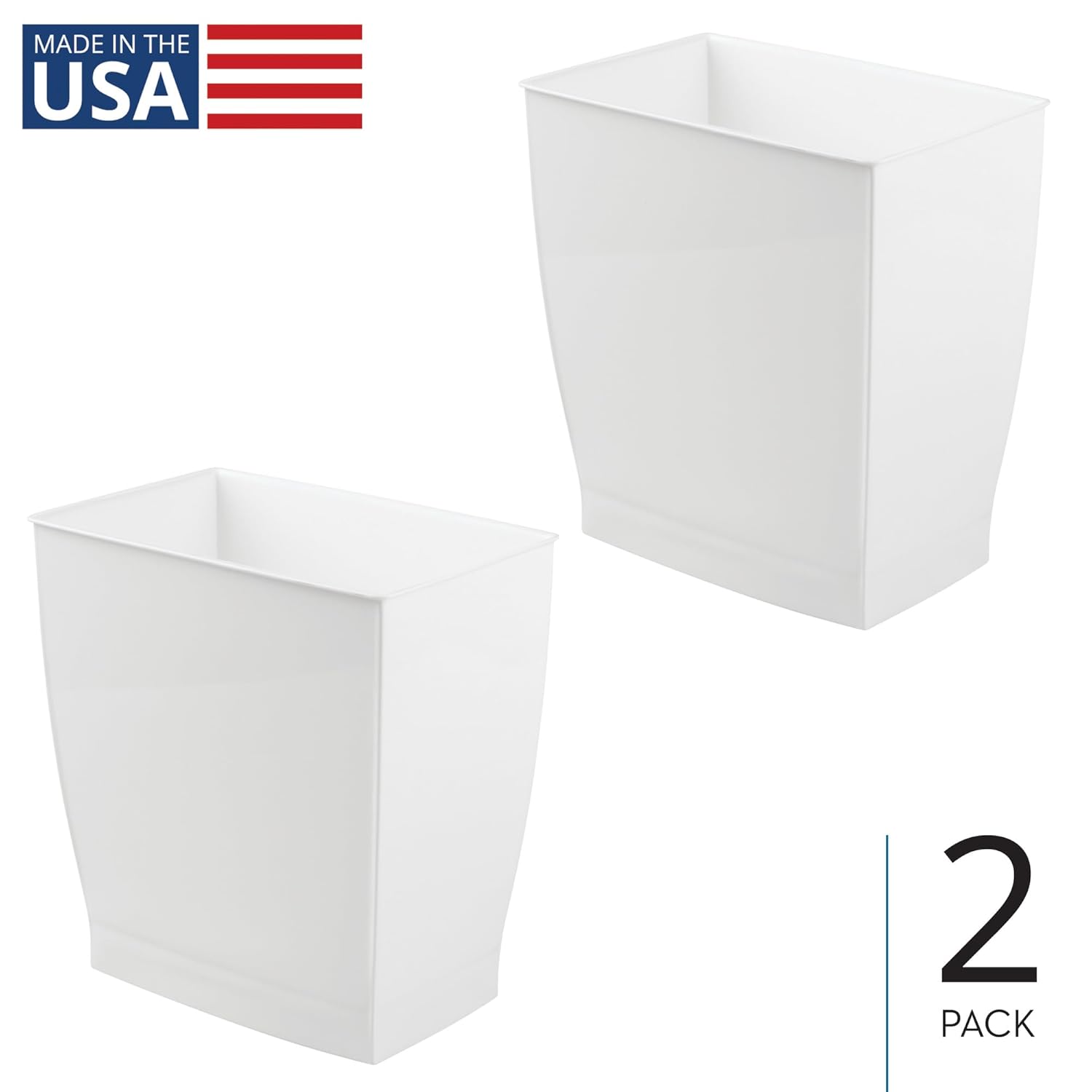 iDesign Small Rectangular Bathroom Trash Cans - Set of 2 - White - Made in USA