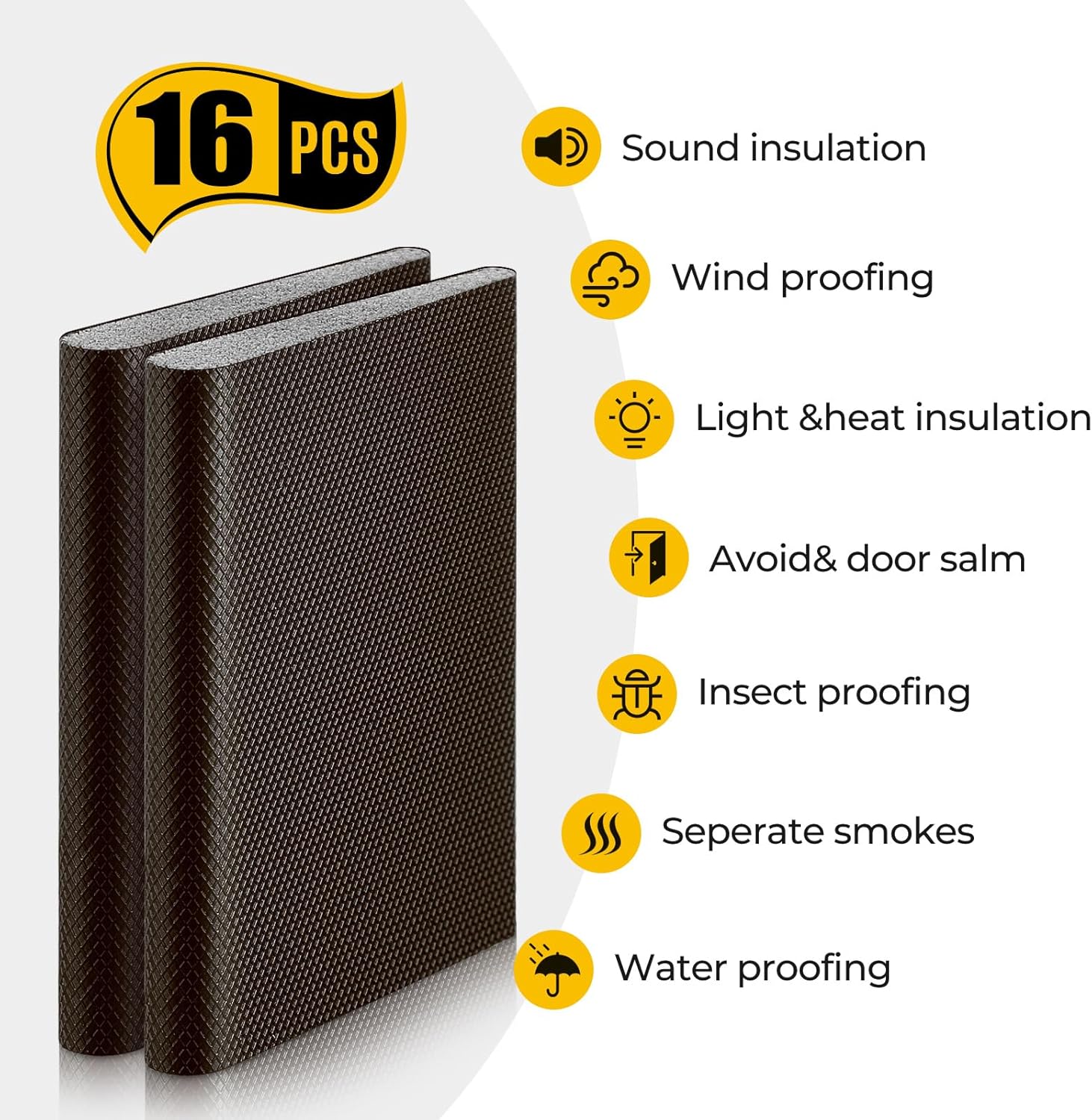 Zonon 16 Pieces Door Corner Seal Weatherstripping Exterior Door Frame Seal Draft Stopper Adhesive Corner Pads for Weather Stripping and Draft Protection (Black,Brown)