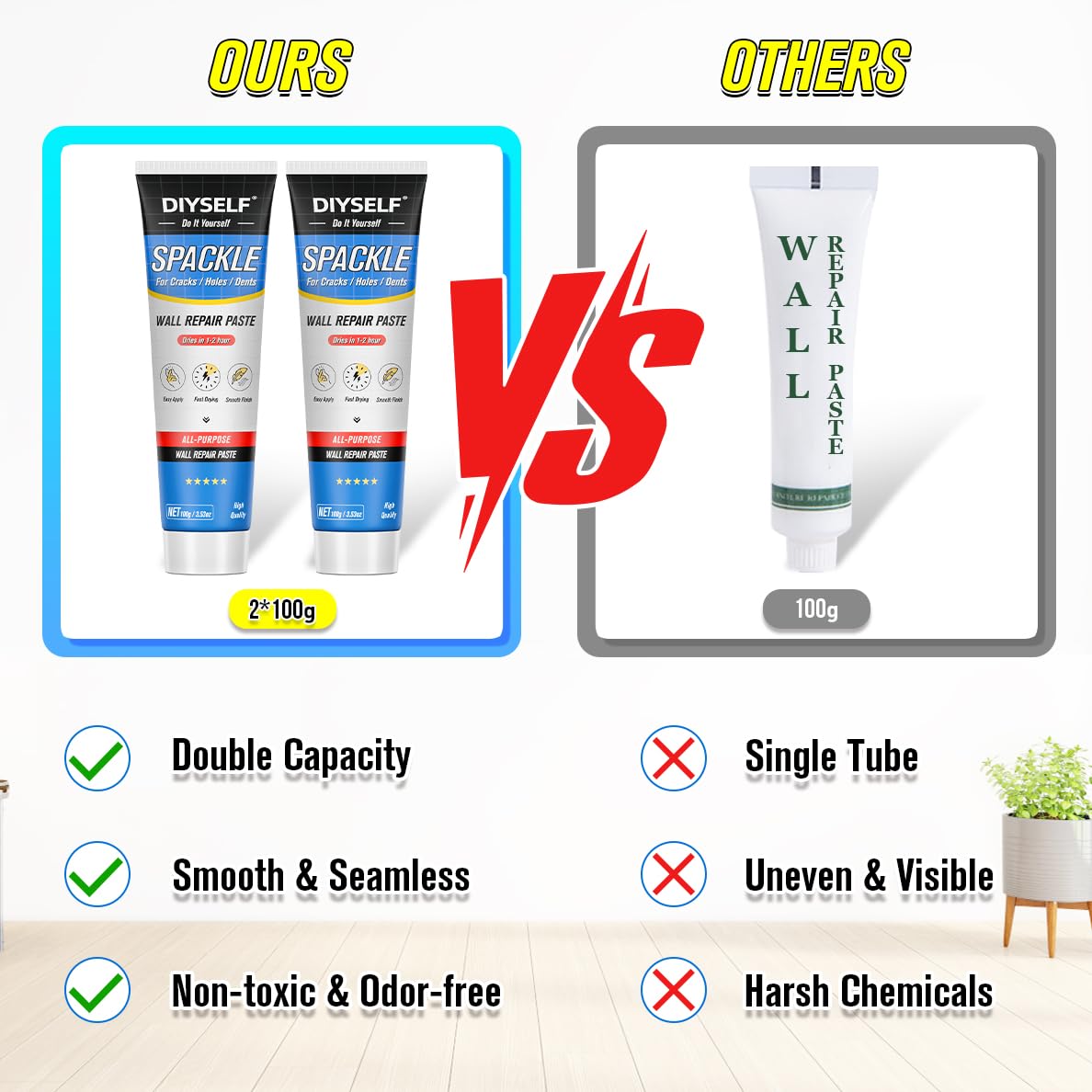 • Strong Adhesion & Smooth Finish: Our putty for wall holes provides reliable adhesion and excellent spreadability. It helps create a durable fix while blending naturally with the wall’s surface, delivering a clean, seamless finish.