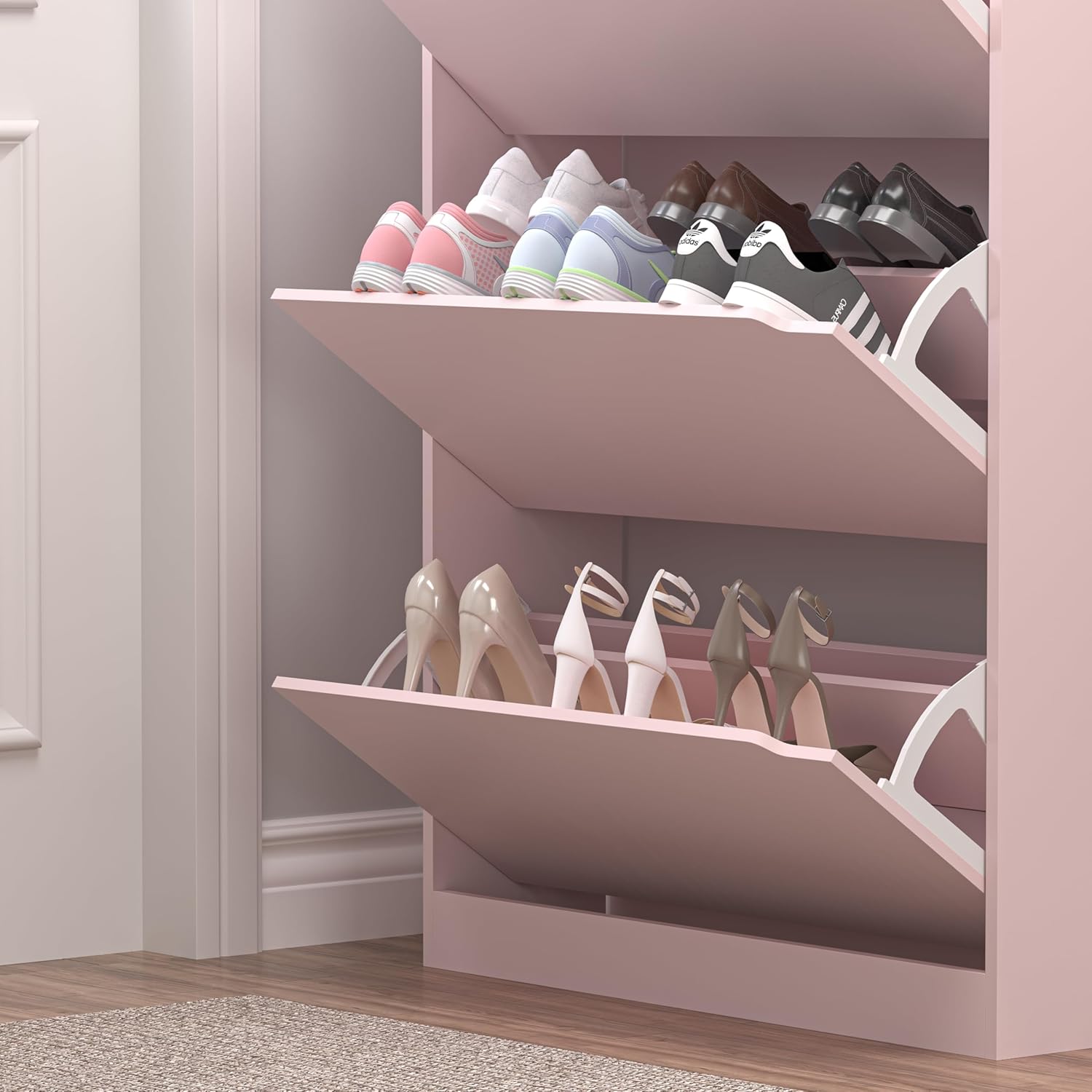 • 【Shoe Cabinet for Entryway】:The hidden shoe storage cabinet with 3 flip Drawers, pink makes it a neat and beautiful finish and looks great,Perfect for placing in the entryway, hallway, living room, or porch, space saving.