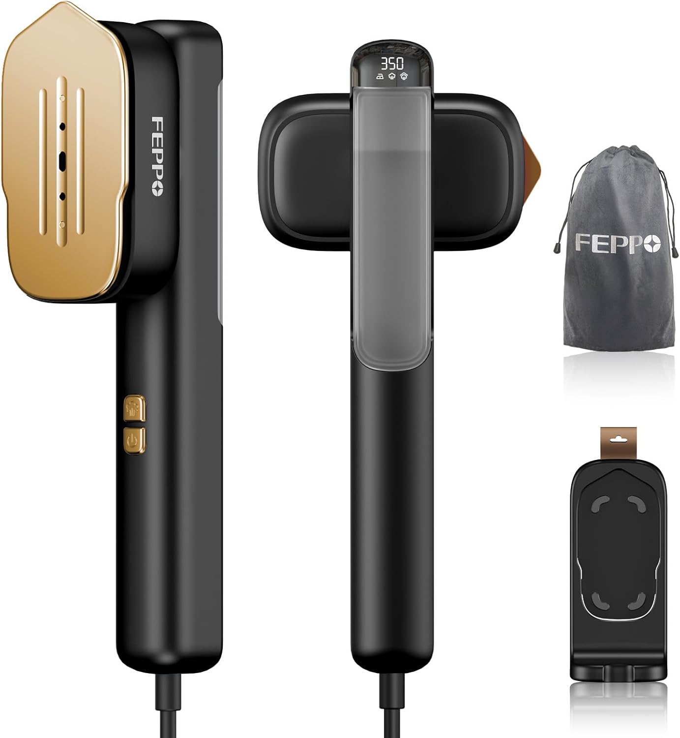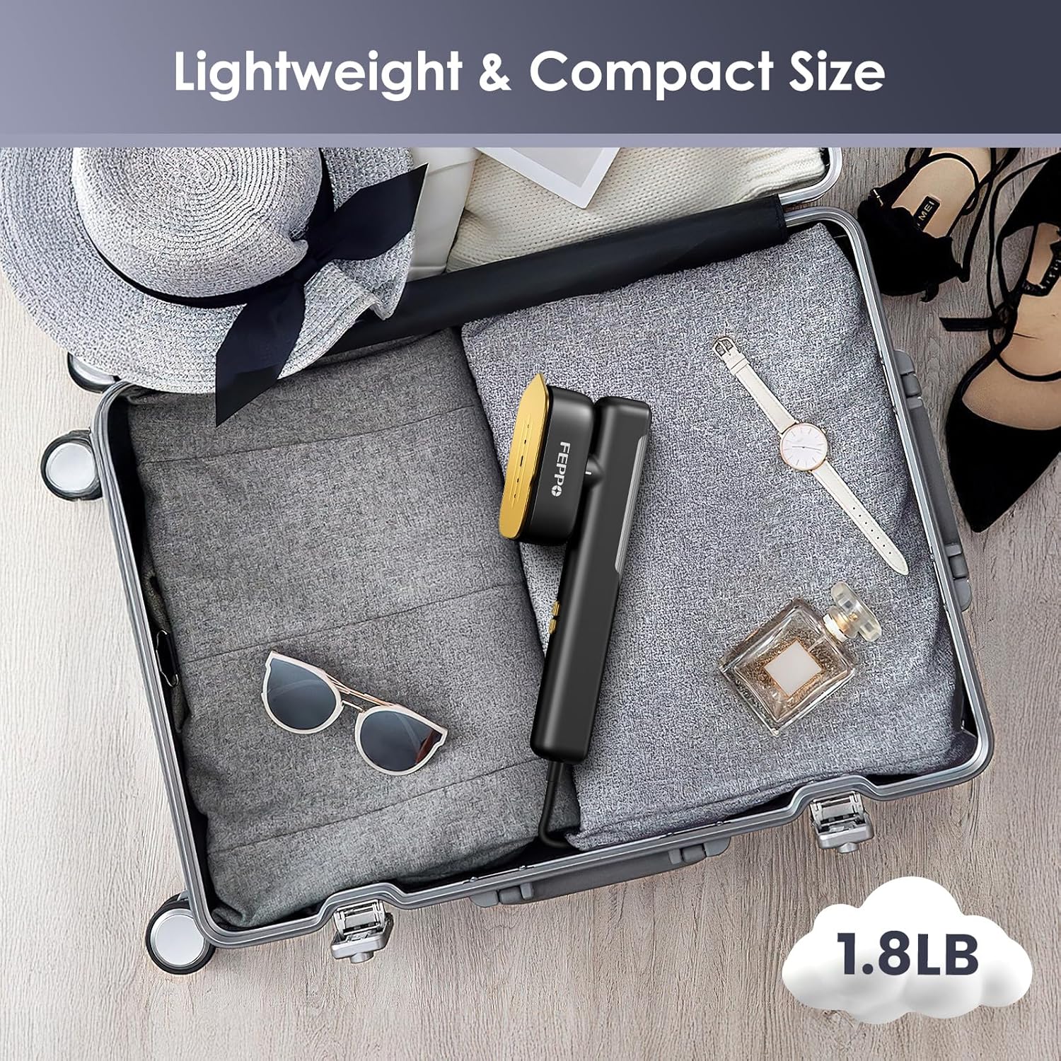 FEPPO Travel Steamer for Clothes, 110-240V Dual Voltage Portable Steamer & Iron 2 in 1, Fast Heat Up, 1100W Powerful Garment Steamer, Large Ceramic Heat Panel for Home & Global & Europe Traveling