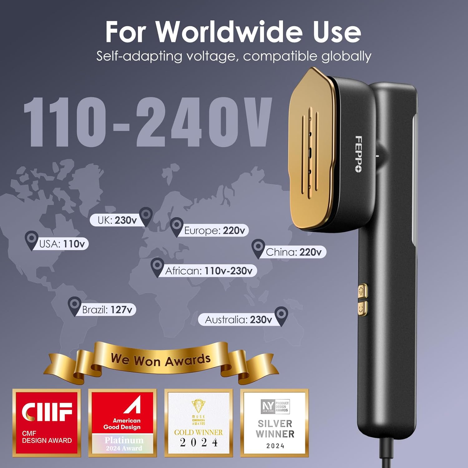 • 【110V-240V Dual Voltage Steamer for Global Travel】 Experience hassle-free ironing worldwide with our clothes steamer featuring advanced 110V-240V dual voltage technology. No adapters neede, Plug and Play, Easy to use. This travel steamer for clothes is your wrinkle-free companion for international trips, business travels, or daily use. Whether you're in Europe, the U.S., or Asia, you no longer need to worry about the ironing machine can not be used due to different voltages.